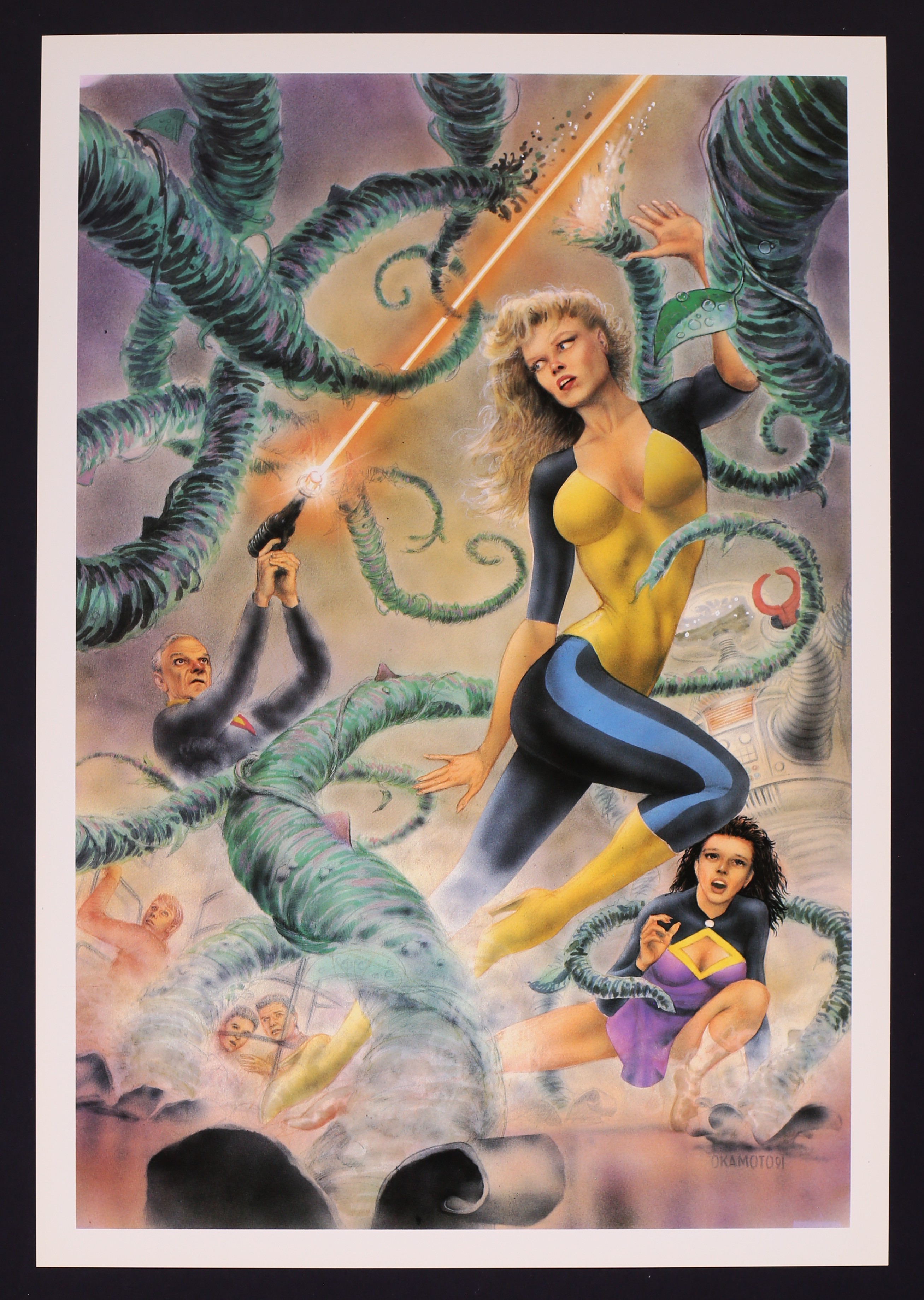Lost In Space Portfolio by Mike Okamoto. Features six 11" x 16", full color prints with cover art from the 1991 Innovation comic series by Mike Okamoto. NOTE: Portfolio originally issued with seven prints, this copy only has six.