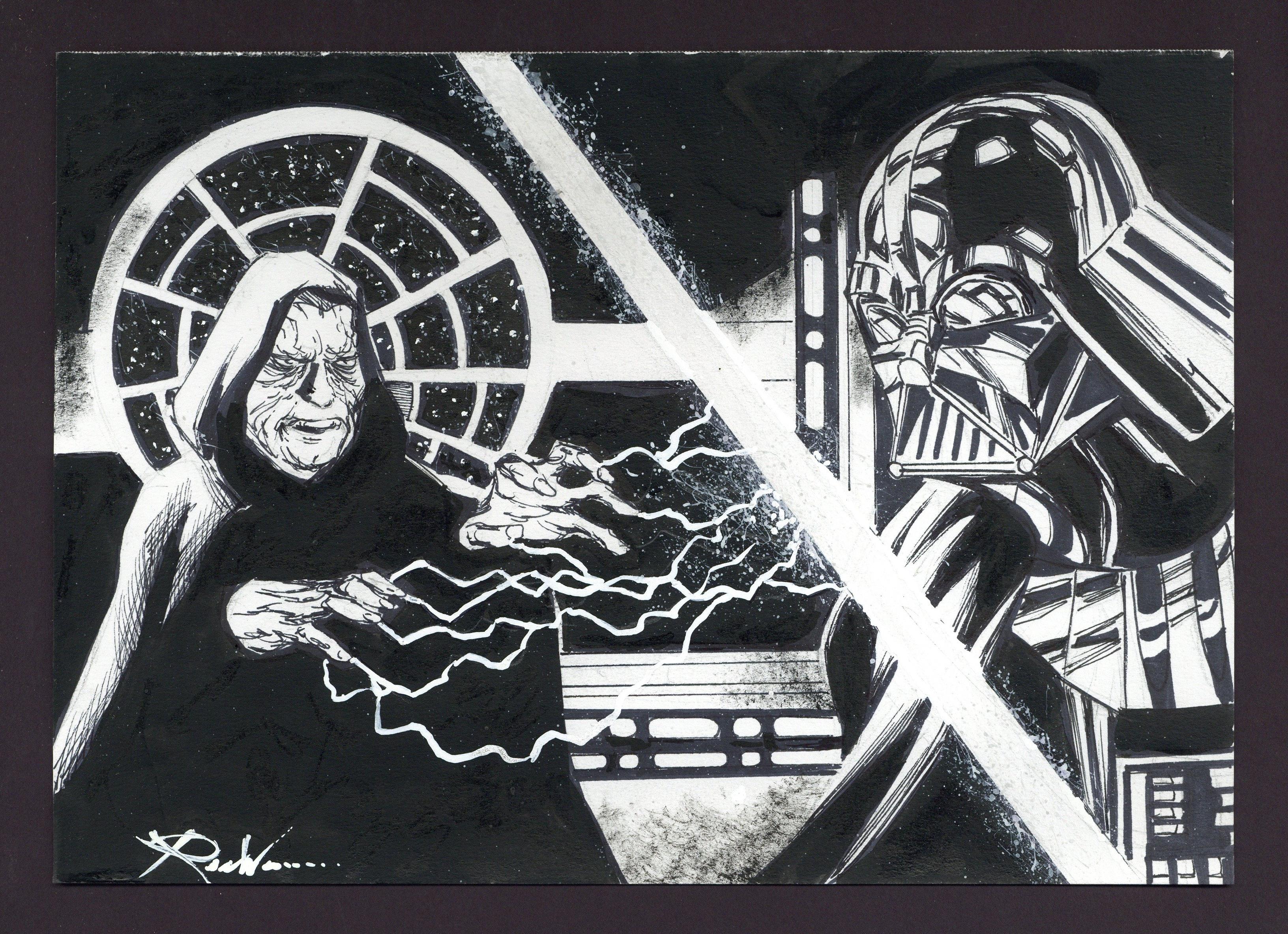 Darth Vader and the Emperor Sketch by Ron Williams. Signed by the artist. Pencil and ink on art stock. 7" x 10", B&W.