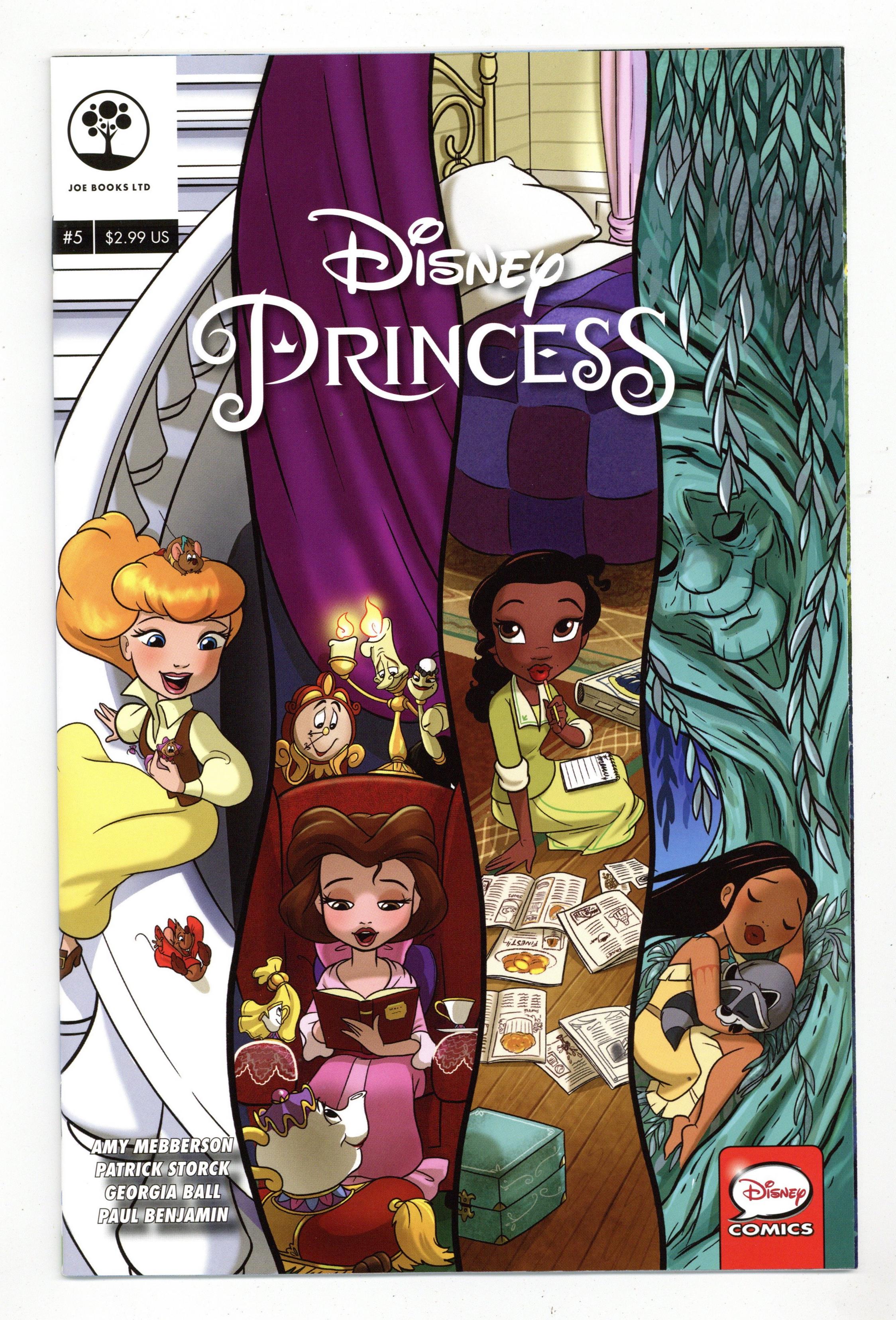 Written by Amy Mebberson, Patrick Storck,Georgia Ball and Paul Benjamin. Art and Cover by Amy Mebberson. The hit series continues! Disney's beloved heroines have returned in this hilarious collection of Disney Princess comic strips! Featuring laugh-out-loud stories from the worlds of Ariel, Belle, Rapunzel, Tiana, Cinderella, Aurora, and more, this charming ongoing series will make all your royal dreams come true. 32 pages, full color. Cover price $2.99. Grade: NM 9.4 explanation of grade Condition: Used (collectible)