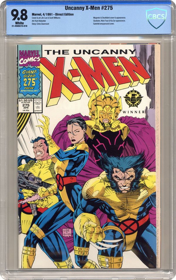 First Printing. Direct Edition. 52-page Special Giant-Sized Issue - "The Path Not Taken!" Part 2 of 4. Guest-starring the Starjammers, Nick Fury, and Ka-Zar. Story by Chris Claremont. Art and cover by Jim Lee and Scott Williams. The X-Men battle Deathbird and Shi'ar Imperial Guard for the fate of the universe. Plus, the students of Xavier's Institute are reunited with someone they never thought they'd see again. Meanwhile back on Earth, Nick Fury, Ka-Zar, Rogue, and Magneto mount a desperate attack to save mankind from the mad machinations of Zaladane! ***death of Zaladane Tri-fold cover by Lee/Williams. 54 pgs. Cover price $1.50. Grade: CBCS 9.8 explanation of grade Condition: Used (collectible)