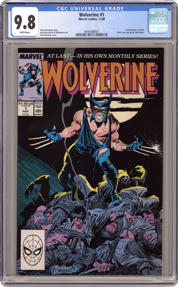 Direct Edition. Part 1 of 3 - "Swordquest!" Written by Chris Claremont. Art by John Buscema and Klaus Janson. Wolvie slices through a pile of pirate slavers, and on his way to Mandripoor discovers a plot by the Black Blade to obtain the legendary Muramasa Sword. John Byrne art on back cover. NOTE: 1st appearance of Wolverine as Patch. Cover price $1.50. Grade: CGC 9.8 explanation of grade Condition: Used (collectible)