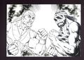 Hulk Hogan and Macho Man Randy Savage Sketch by Ron Williams. Pencil and ink on heavy stock. Signed by the artist. 7" x 10", B&W.