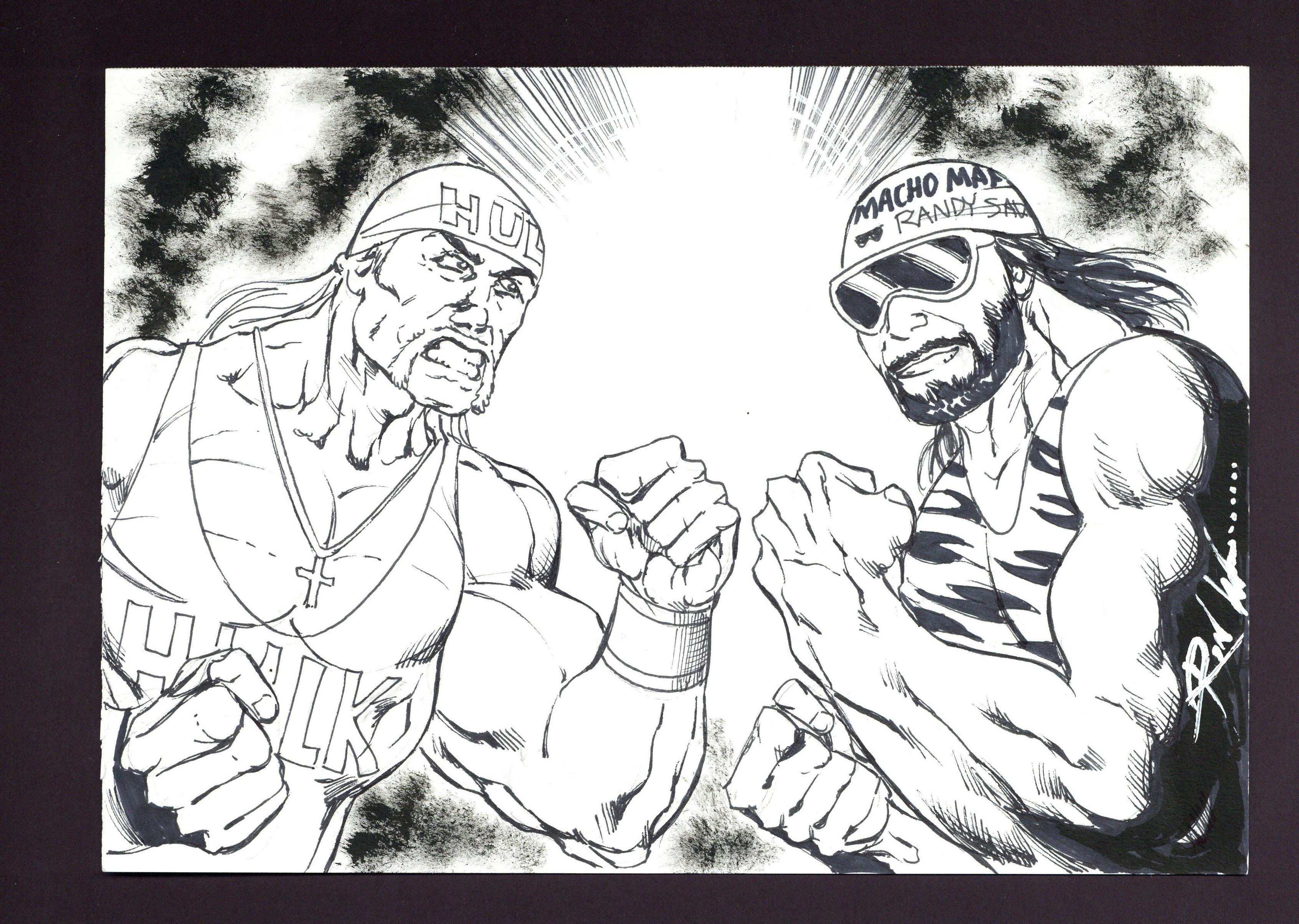 Hulk Hogan and Macho Man Randy Savage Sketch by Ron Williams