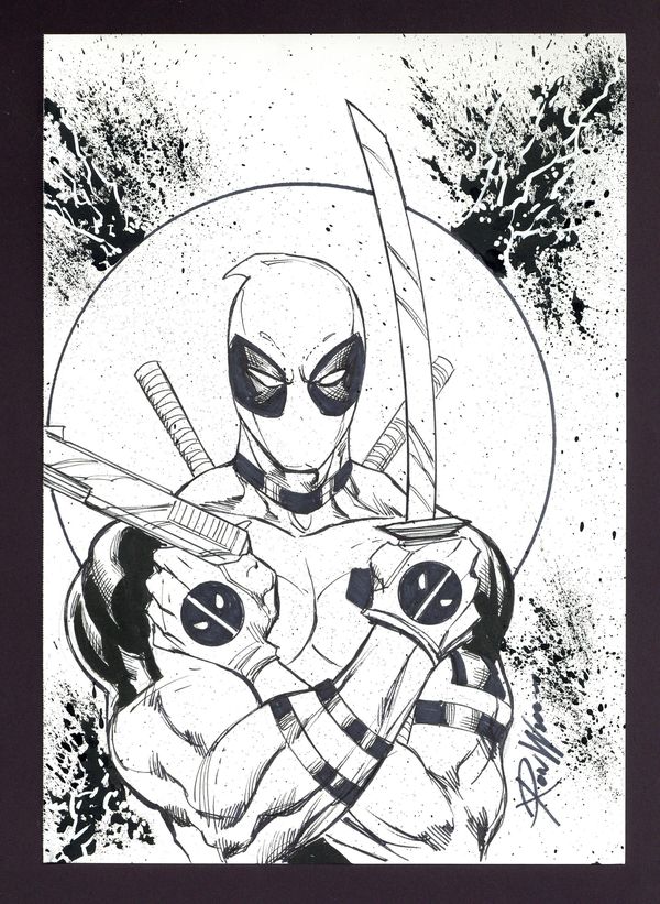 Deadpool Sketch by Ron Williams. Pencil and ink on heavy stock. Signed by the artist. 7" x 10", B&W.