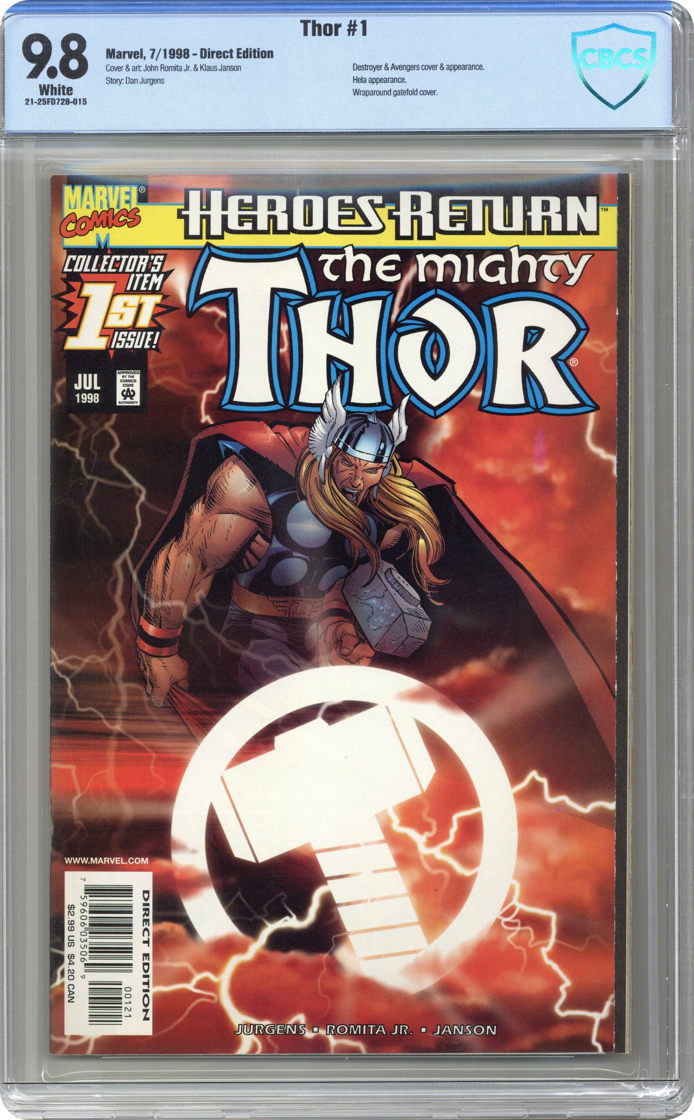 Thor (1998 Marvel 2nd Series) 1B CBCS 9.8 Romita Jr. Hammer Symbol Variant