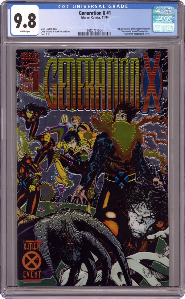 Ended Oct 3 2023 Winning Bid $39 Direct Edition. Chromium cover. Scott Lobdell script. Chris Bachalo art. Mark Buckingham inks. This issue kicks off a brand new generation of X-Men: Husk, Jubilee, M, Chamber, Skin, Penance, Synch, and Mondo led by Banshee and White Queen. Cover price $3.95. Grade: CGC 9.8 explanation of grade Condition: Used (collectible)