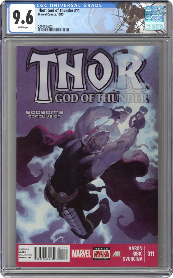 Ended Jul 17 2023 Winning Bid $25 GODBOMB: Part 5 of 5 (W) Jason Aaron (A/CA) Esad Ribic The grand finale of the epic time-traveling saga of the God Butcher that began in issue #1. After the dust clears, what gods will be left?" Cover price $3.99. Grade: CGC 9.6 explanation of grade Condition: Used (collectible)
