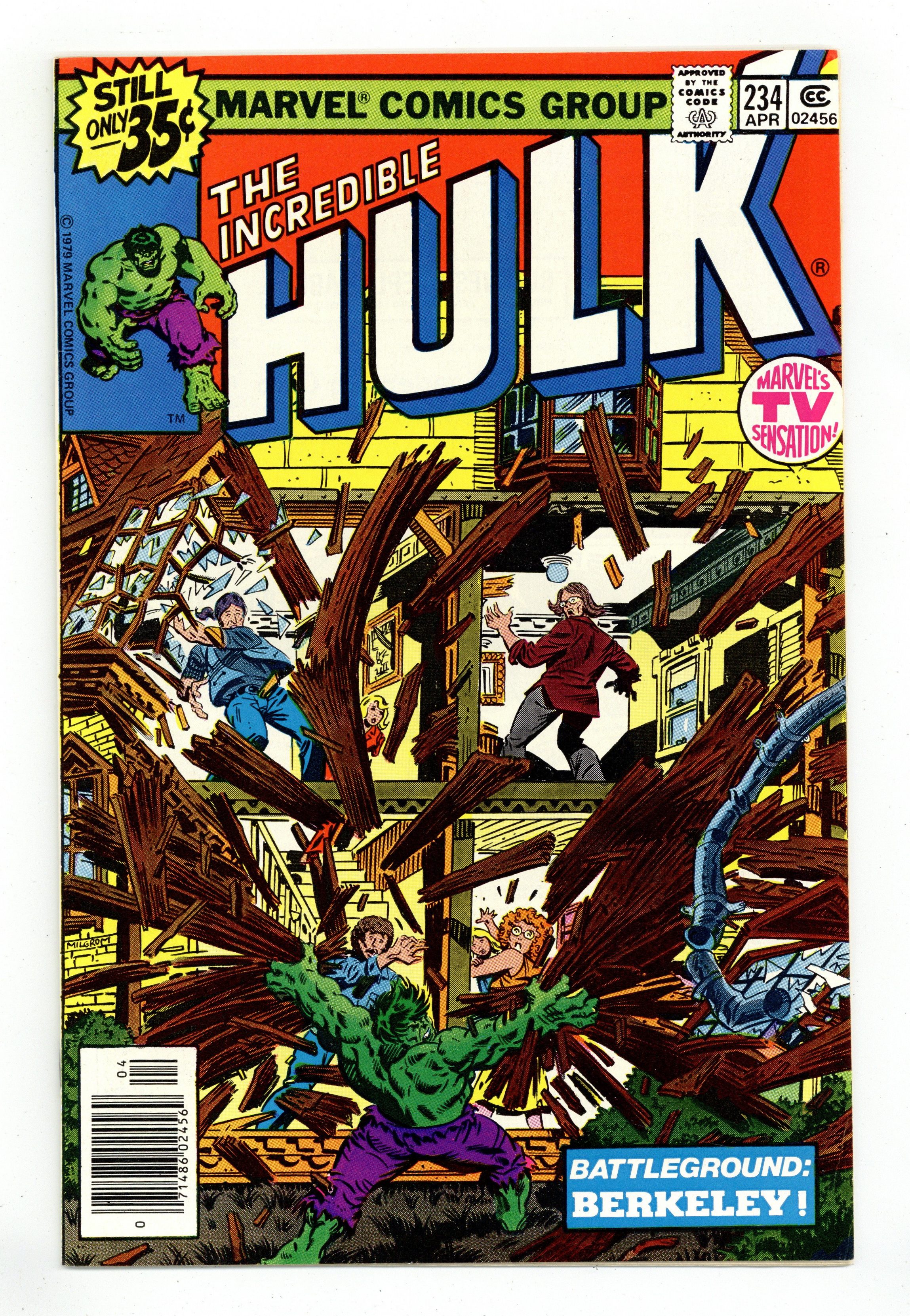 "Battlefield Berkeley!" Part 1 of 4. Quasar and Doc Samson cameo. Story by Roger Stern. Art by Sal Buscema and Jack Abel. Learn the intricate past of Trish Starr, the Hulk's erstwhile friend, and find out how the Hulk, Hank Pym, Doctor Strange and the Defenders' Nighthawk all fit into it. Plus, what happens when Machine Man shows up and kidnaps Trish? Quasar's story continues in Marvel Two in One (1974) #73. 36 pages. Cover price $0.35. Grade: FN+ 6.5 explanation of grade Condition: Used (collectible)