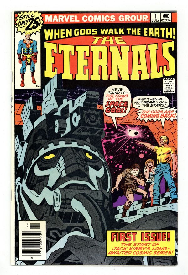 "The Day of the Gods." Written by Jack Kirby. Pencils by Jack Kirby. Inks by John Verpoorten. What if all the stories were true? All myths...all the legends... What if all the stories about gods and monsters were true? For archeologist Doctor Damian and his daughter Margo, those legends are about to become reality. The gods are real and they've lived among us for centuries. 1st appearance of Ikaris, Makkari, Kro and the Eternals as a team . 36 pages, full color. Cover price $0.25. Grade: FN/VF 7.0 explanation of grade Condition: Used (collectible)