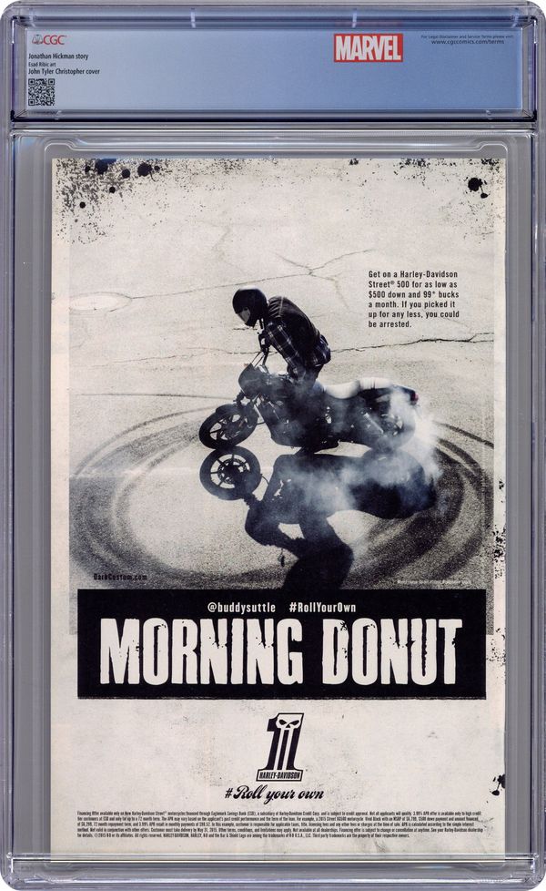 Ended Apr 17 2023 Winning Bid $37 Written by Jonathan Hickman. Art by Esad Ribic. Cover by John Tyler Christopher. THE FINAL INCURSION IS HAPPENING! THE MARVEL UNIVERSE IS COLLIDING WITH THE ULTIMATE UNIVERSE! AND NEITHER WILL SURVIVE! 52 pages, full color. Rated T+ Cover price $4.99. Grade: CGC 9.8 explanation of grade Condition: Used (collectible)