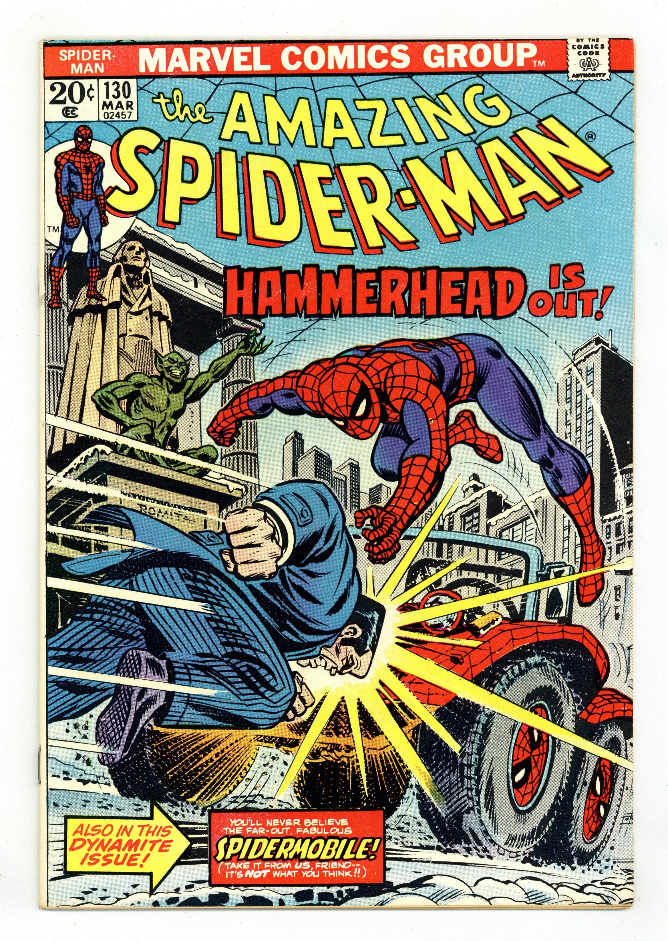 "Betrayed!" Part 1 of 2. Guest-starring the Human Torch. Script by Gerry Conway. Pencils by Ross Andru. Inks by Frank Giacoia and Dave Hunt (backgrounds). Cover by John Romita and Tony Mortellaro. It's the first appearance of the Spider-Mobile! The web-slinger's new toy to fight crime! But while Spidey speeds around town in his fresh set of wheels; the Jackal, Hammerhead, and Doctor Octopus separately plot his demise! By the time the wall-crawler slows down, he realizes that his dear Aunt May is about to make the biggest mistake of her life...with Doc Ock! The amazing one sends his RSVP next issue! Cameo appearances by Mary Jane Watson, Betty Brant, Ned Leeds, and J. Jonah Jameson. (Notes: Hammerhead and Dr. Octopus both previously appeared in Amazing Spider-Man 115. The letters page includes Marvel Value Stamp series A #2 Hulk by Herb Trimpe. The bullpen bonus page contains promotional stamp #5 the Hulk. The promotional stamp is not to be confused with the actual series A stamp #5. This story was reprinted in Marvel Tales 107.) 36 pages. 20 cent cover price. Cover price $0.20. Grade: FN+ 6.5 explanation of grade Condition: Used (collectible)