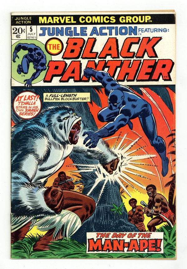 Black Panther stories begin. Cover art by John Romita. The Monarch and the Man-Ape! (reprinted from Avengers 62), script by Roy Thomas, pencils by John Buscema, inks by George Klein; When the Black Panther and his fellow Avengers return to Wakanda they are captured by M'Baku, who plans to kill the Black Panther. Ad for The Ultimate Fan Club! FOOM! Friends Of Ol' Marvel. Monsters Unleashed ad. 36 pgs., full color. Cover price $0.20. Grade: VG+ 4.5 explanation of grade Condition: Used (collectible)