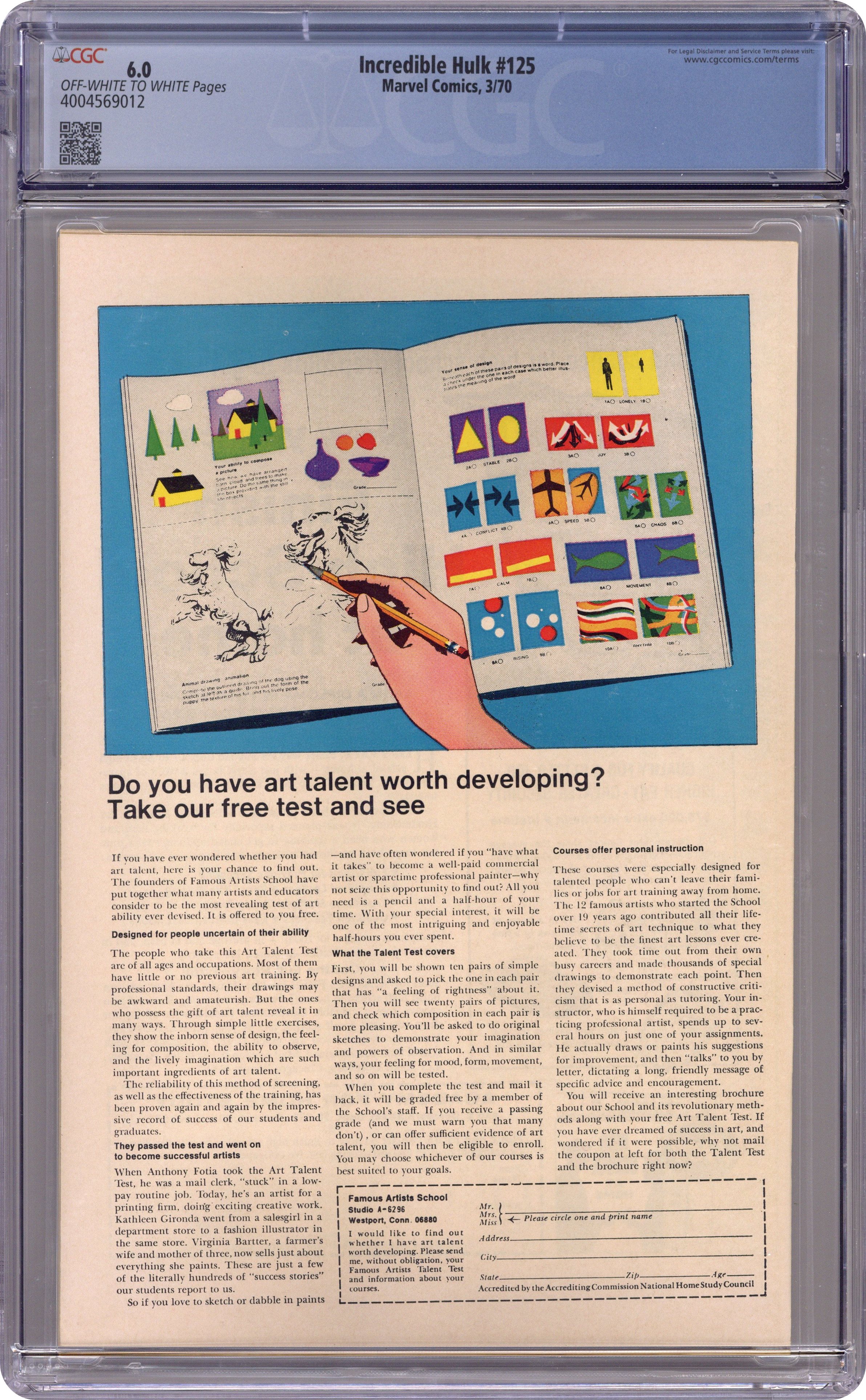 Cover art by Herb Trimpe. And Now, the Absorbing Man!, script by Roy Thomas, art by Herb Trimpe; Banner mans a rocket to blow up a dangerous comet and Absorbing Man hitches a ride back to Earth; The Hulk and Creel collide. Letter from Alan Brennert. 36 pgs. $0.15. Cover price $0.15. Grade: CGC 6.0 explanation of grade Condition: Used (collectible)