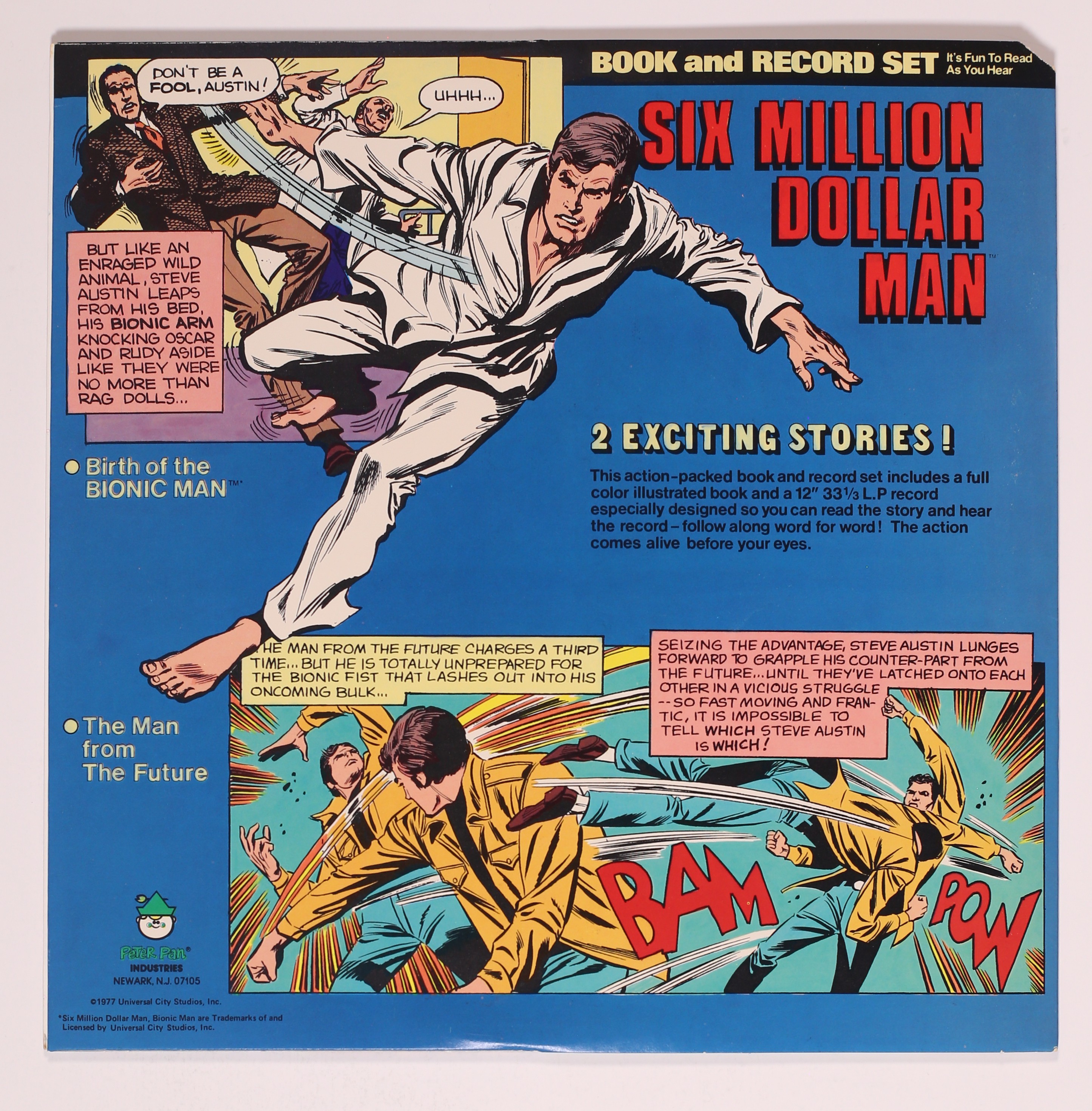 Ended Nov 14 2023 Winning Bid $19 Photo cover sleeve. Six Million Dollar Man Power Records (#8166 1976). 33 Speed Record Album. This album features four exciting stories: "The Birth of the Bionic Man," "The Iron Heart," "The Man from the Future," "Bionic Berserker!" Grade: VF- 7.5 explanation of grade Condition: Used (collectible)