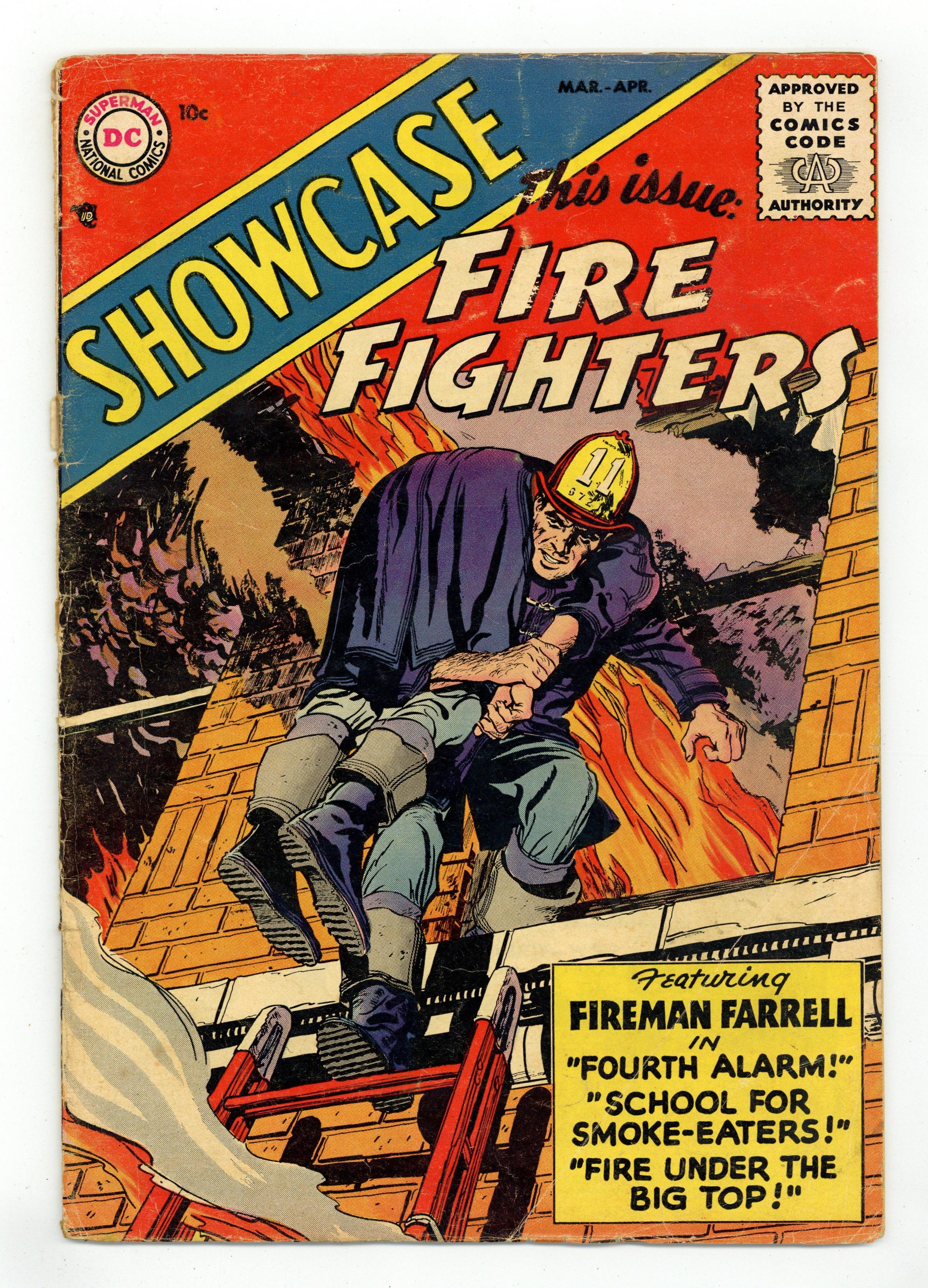 Ended Apr 11 2023 Winning Bid $700 Cover by John Prentice. "The Story Behind Showcase," script by Jack Schiff, art by Win Mortimer; The genesis of Showcase is explained, having originated with fan Larry Blake's letter. "The School for Smoke-Eaters," script by Arnold Drake, art by John Prentice; Fireman Farrell passes his final exam to become a fireman. Smoky Stan cartoon by Henry Boltinoff. "Fire under the Big Top," script by Arnold Drake, art by John Prentice; Fireman Farrell fights a fire at a circus. Varsity Vic cartoon by Henry Boltinoff. Secrets of the Firehouse article by Jerry McKay. "Fourth Alarm," script by Arnold Drake, art by John Prentice; A TV crew catches the firemen in action and helps influence a vote on fireman pay. 36 Pages, Full Color. Cover price $0.10. Grade: GD/VG 3.0 explanation of grade Condition: Used (collectible)