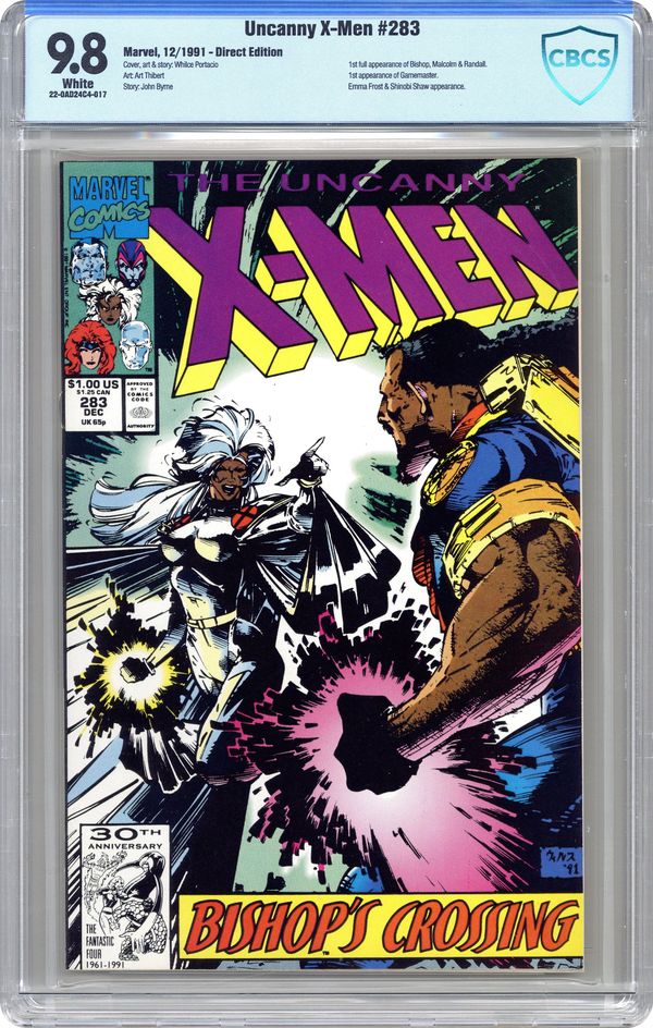 1st full appearance of Bishop. "Bishop's Crossing!" Story by Whilce Portacio and John Byrne. Art by Whilce Portacio and Art Thibert. His name is Bishop, and he's arrived here from the future to set the wrong things right. Even if he has to go through the X-Men to do it. Plus, whatever happened to Jean Grey and Emma Frost? 36 pgs. Cover price $1.00. Grade: CBCS 9.8 explanation of grade Condition: Used (collectible)