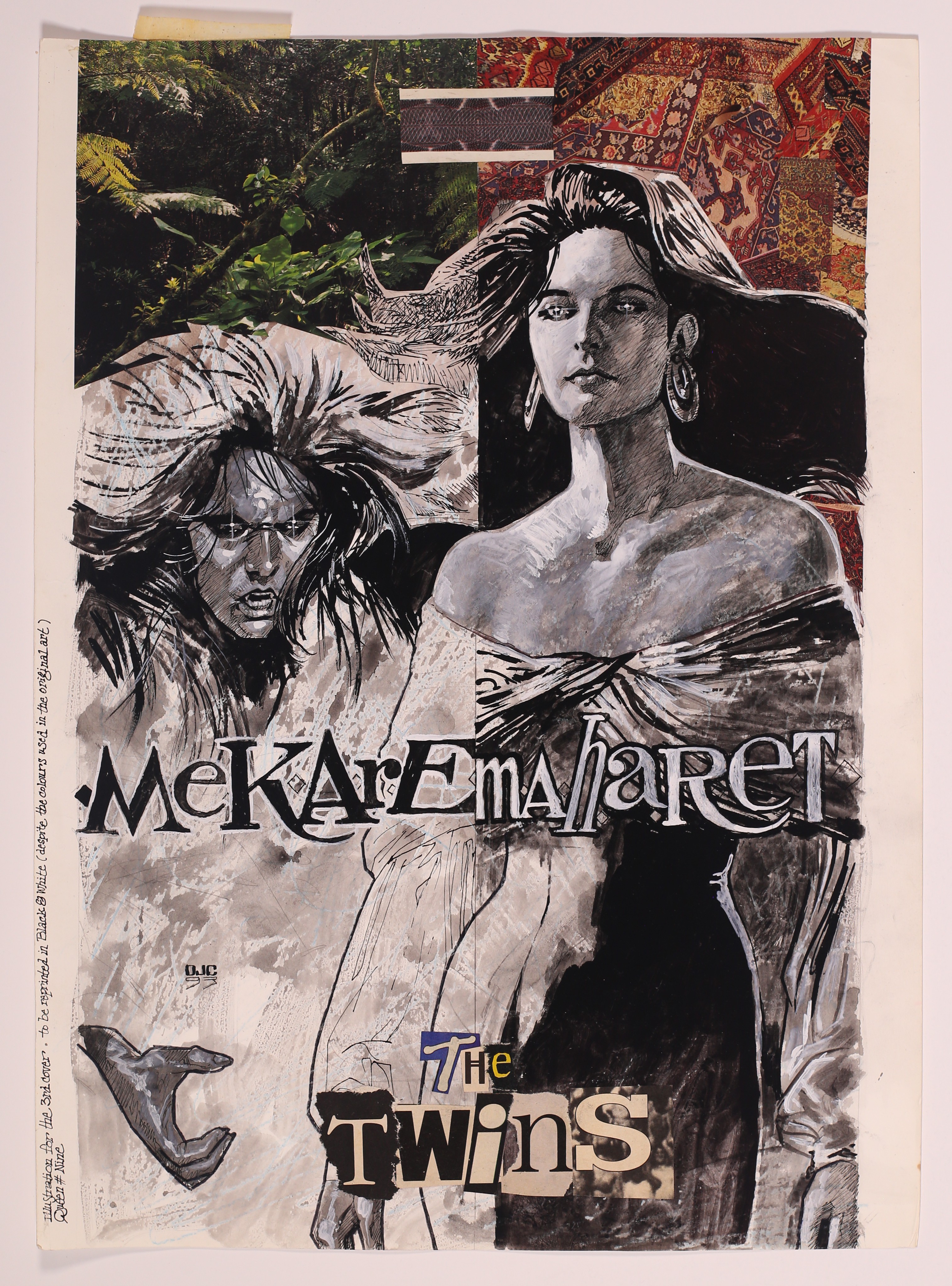 Original Art from Queen of the Damned #9 (1993) Mekare & Maharet Pin-Up (Inside Back Cover) by OJ Cariello. An absolutely beautiful mixed media pin-up that masterfully conveys the duality of the twin witches. Pencil, ink, paint, and collage on heavy stock with acetate overlay (detached).