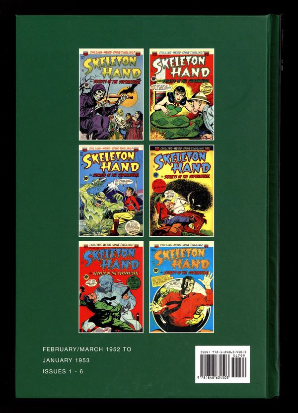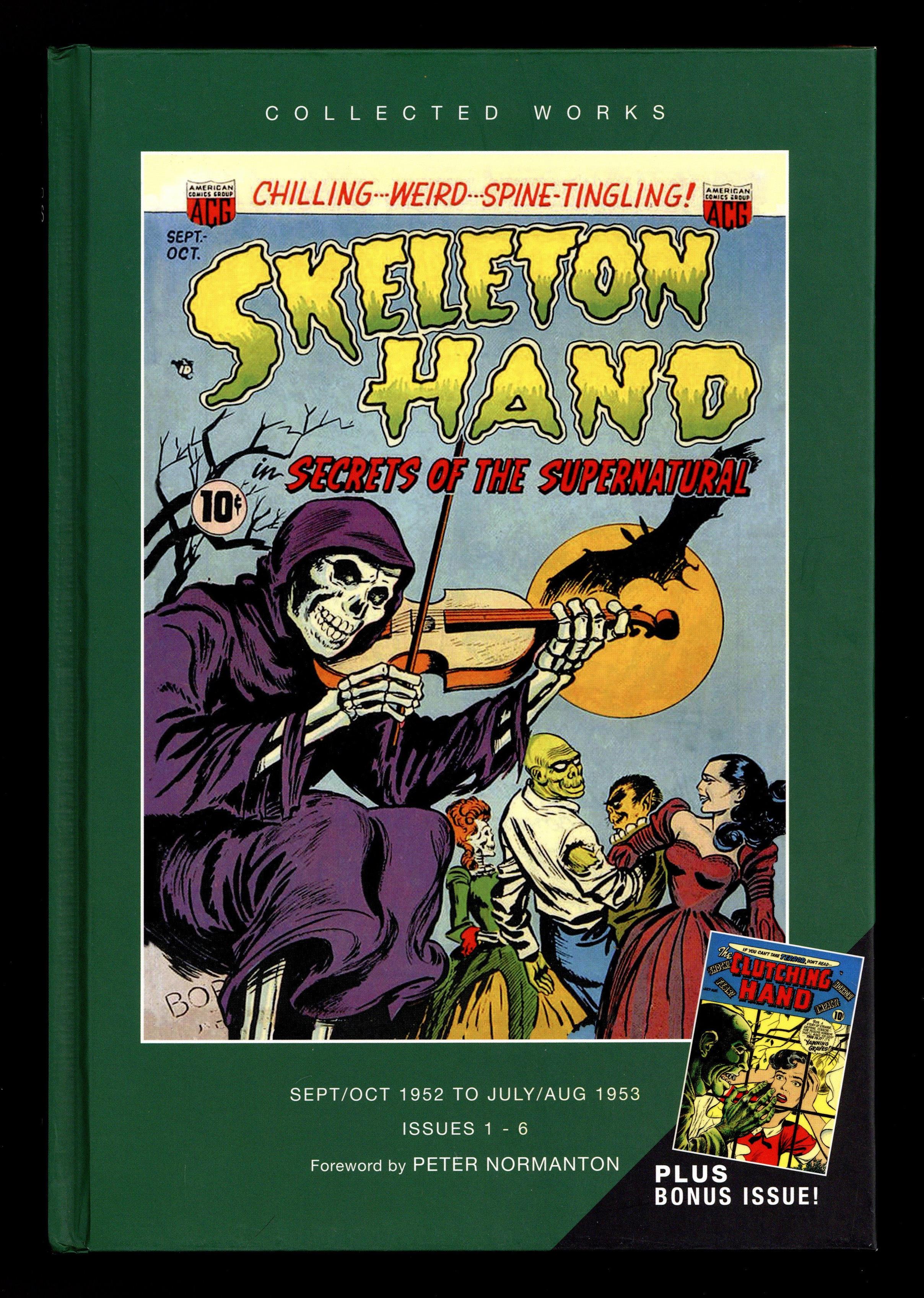 Ended Oct 16 2024 Winning Bid $41 1st printing. Collects Skeleton Hand (1952-1953 ACG) #1-6 and The Clutching Hand (1954) #1. Written by Roy Thomas. Art by Edvard Moritz. Collected together, the classic ACG title Skeleton Hand is brought together into a beautiful complete volume exclusively from PS Artbooks. One of the lesser known (but equally loved) ACG titles, this is an exciting addition to the ACG Collected Works line of classic pre-Code comic books . The action-packed adventures from issues #1-6 from September/October 1952 to July/August 1953, along with Clutching Hand #1 from Jul/Aug 1954, have been meticulously compiled from the original source material and painstakingly digitally restored. Hardcover, 288 pages, full color. Cover price $47.99. Grade: NM- 9.2 explanation of grade Condition: Used (collectible)