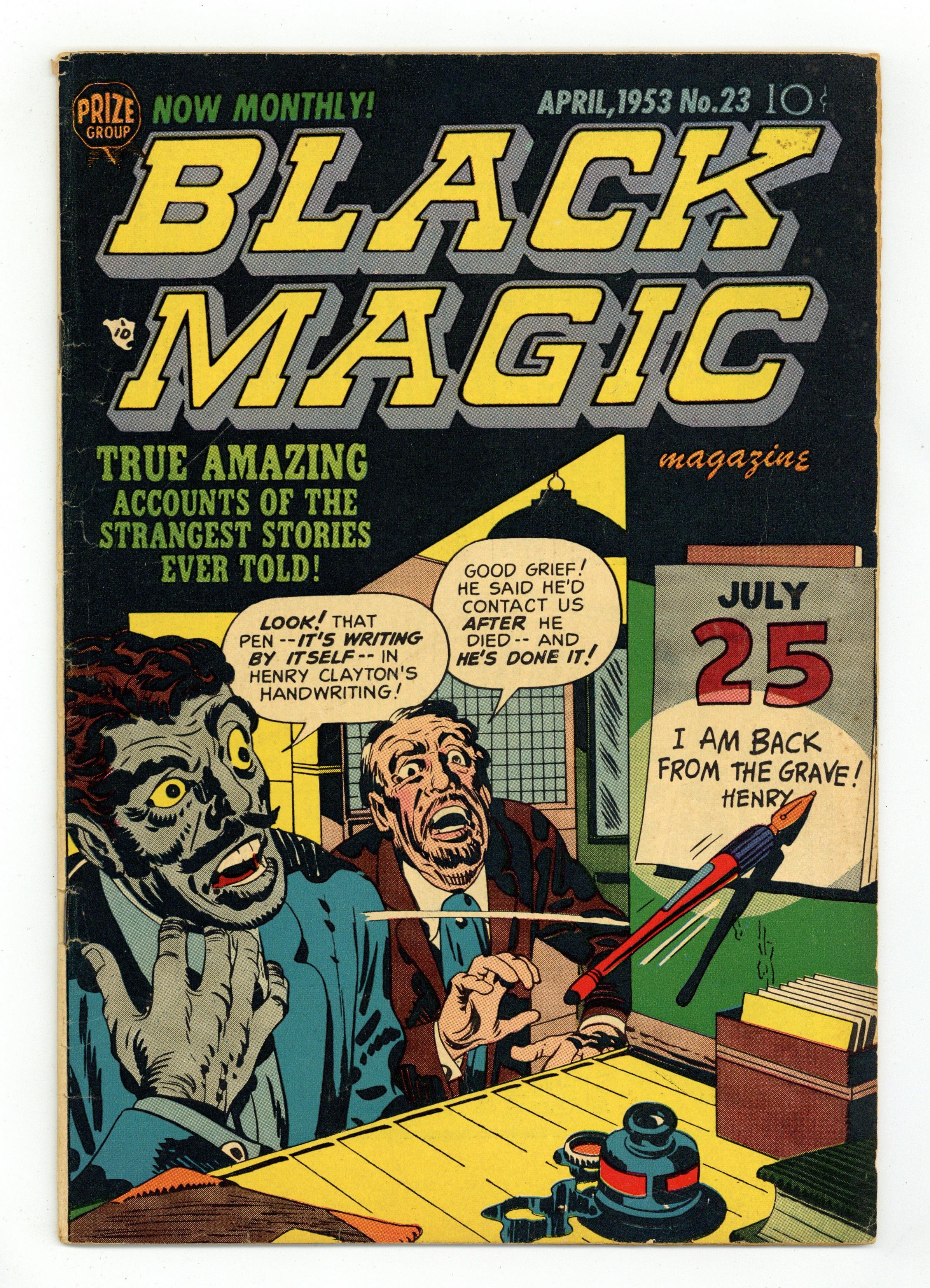 Cover by Jack Kirby. Art by George Roussos, Mort Meskin, Al Eadeh, Harry Lazarus, Bill Draut, Joe Simon and Jack Kirby. Captain America creators Joe Simon and Jack Kirby present their own contribution to the horror comics trend of the 1950s, featuring tales of ghosts and the paranormal. Issue # 23 on cover; listed as Vol. 3, issue #5 in indicia. An artist's latest painting foretells a woman's death. A woman whose boyfriend died has horrifying dreams, which her psychiatrist is happy to explain. A woman strangles men with her living hair, similar to the powers of the later Marvel character Medusa. Those Who Are About to Die!; The Faces of Death!; Race with Death!; Land of the Dead; The Guiding Light; Peg ONeils Ghost; Evil Spirit! 36 pages, Full Color. Cover price $0.10. Grade: GD/VG 3.0 explanation of grade Condition: Used (collectible)