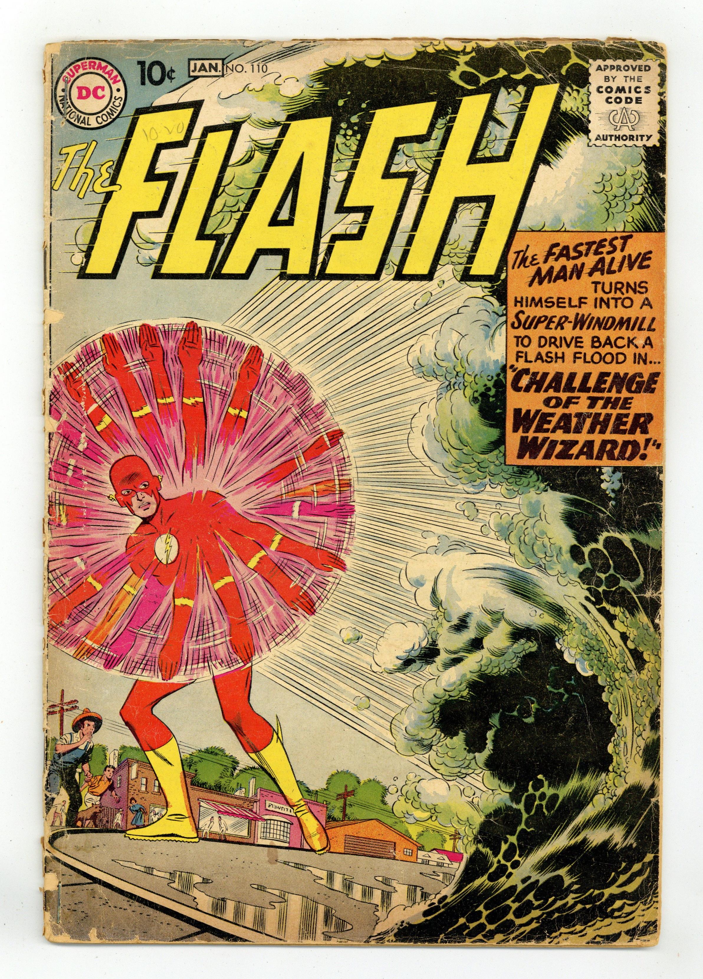 Ended Apr 13 2023 Winning Bid $265 Cover pencils by Carmine Infantino, inks by Joe Giella. First appearance of Kid Flash in Meet Kid Flash, script by John Broome, pencils by Carmine Infantino, inks by Joe Giella; Wally West visits his aunt Iris and meets the Flash. During the meeting a freak accident gives Wally super speed and he becomes the Kid Flash. Challenge of the Weather Wizard!, script by John Broome, pencils by Carmine Infantino, inks by Murphy Anderson; the origin of the Weather Wizard. Flash Facts filler page. The Atom: Servant of Man fact page. Amazing Speeds fact page. Weather Forecast! fact page. 36 Pages, Full Color. Cover price $0.10. Grade: FR 1.0 explanation of grade Condition: Used (collectible)