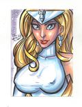 - Signed by the artist. Ink and watercolor on sketch card. 2 1/2" x 3 1/2", full color