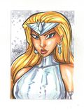 - Signed by the artist. Ink and watercolor on sketch card. 2 1/2" x 3 1/2", full color