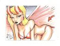 - Signed by the artist. Ink and watercolor on sketch card. 2 1/2" x 3 1/2", full color