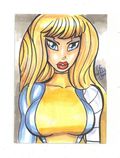 - Signed by the artist. Ink and watercolor on sketch card. 2 1/2" x 3 1/2", full color