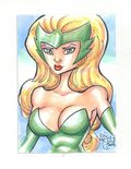 - Signed by the artist. Ink and watercolor on sketch card. 2 1/2" x 3 1/2", full color