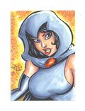 - Signed by the artist. Ink and watercolor on sketch card. 2 1/2" x 3 1/2", full color