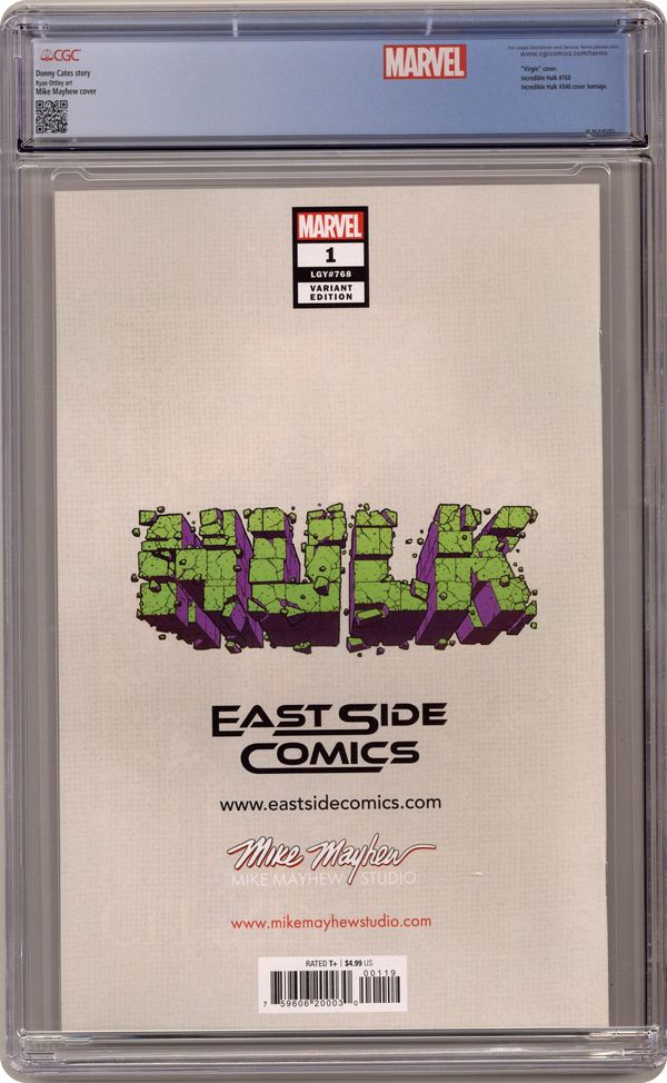 Hulk (2022 Marvel) 1EASTSIDE.B CGC 9.8 Mayhew East Side Virgin Variant