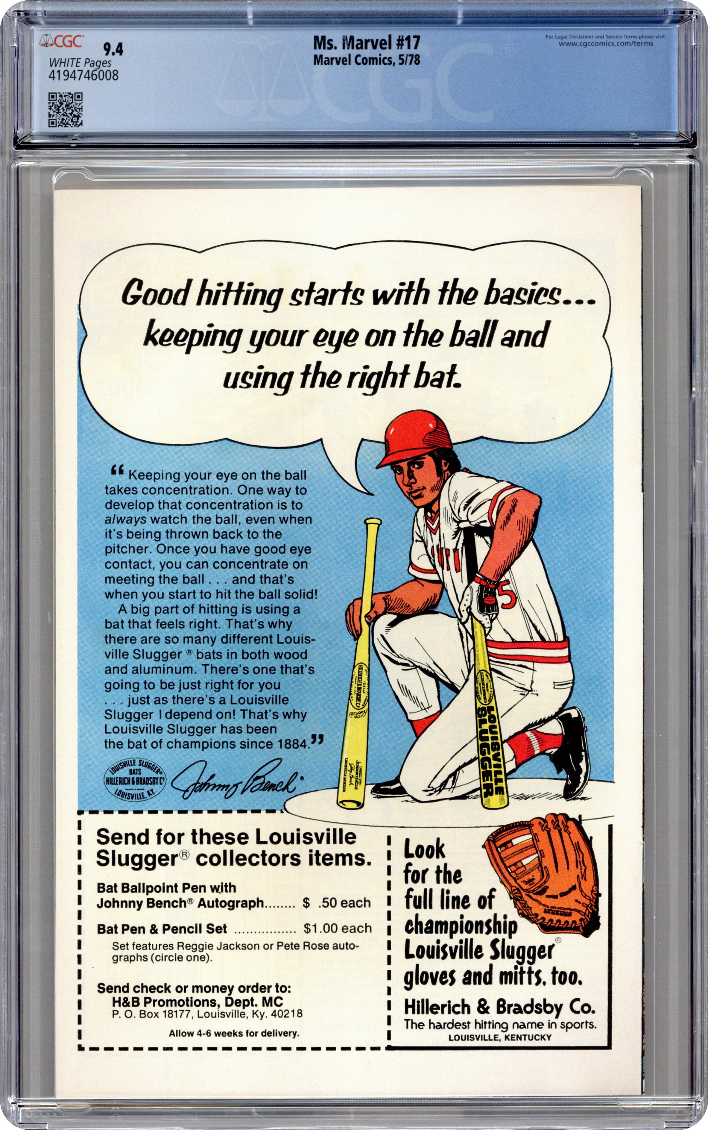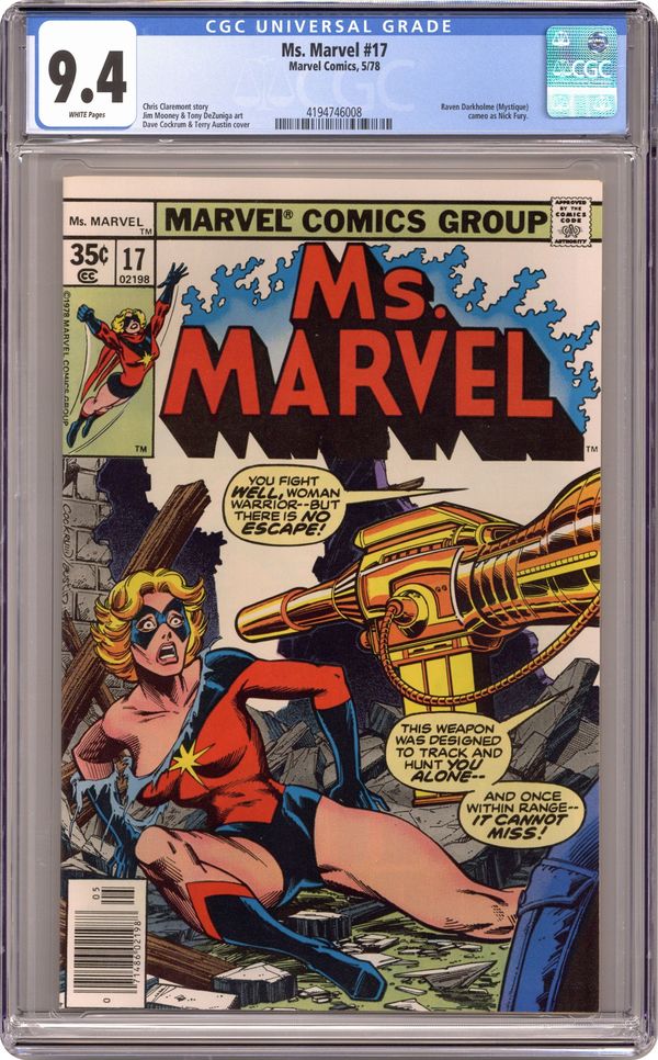 Dave Cockrum and Terry Austin cover. Chris Claremont script. Jim Mooney & Tony DeZuniga art. "Shadow of the Gun" Ms. Marvel vs. Centurion. 2nd appearance of X-Men character, Mystique (cameo). Cover price $0.35. Grade: CGC 9.4 explanation of grade Condition: Used (collectible)