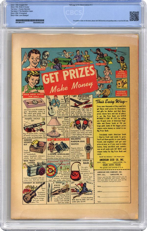 Ended Jan 16 2024 Winning Bid $246 Cover by Harvey Kurtzman. "Dragged Net!", art by Bill Elder (as Sergeant Elder); Joe and Ed travel around the world NOT solving a crime; A parody of Dragnet TV show. "Sheik of Araby!", art by John Severin; Melvin has joined the Foreign Legion to escape his wife and kids, but she decimates the entire regiment at Fort Wadi El Aycare. E.C. comics ad. "Rookie Gladiator" text story. "The Dandelion Caper" text story. "V-Vampires!", art by Wally Wood; A vampire goes on a date with a werewolf. "Lone Stranger!", art by Jack Davis; The Lone Stranger bumbles his way through foiling a stage coach robbery; A parody of the Lone Ranger. First letters page. 36 pgs., full color. $0.10. Cover price $0.10. Grade: CBCS 3.5 explanation of grade Condition: Used (collectible)