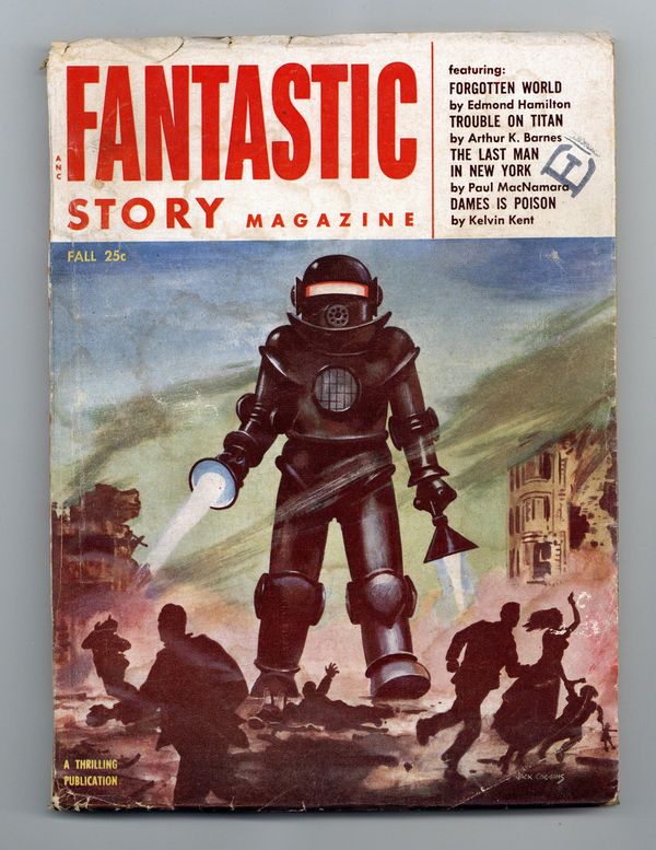 Fall 1954. Cover by Jack Coggins. Stories by Edmond Hamilton, Arthur K. Barnes, Paul MacNamara, Kelvin Kent, and Dave Dryfoos. Three Virgil Finlay illustrations. This issue appeared in the "Back to the Future" (part 1) movie. 7-in. x 9.75-in.; black and white; 134 pages. Cover price $0.25. Grade: VG 4.0 explanation of grade Condition: Used (collectible)