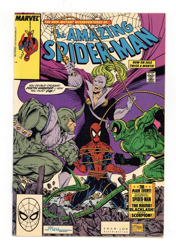 Ended Sep 17 2024 Winning Bid $5 MPI Audio Edition. "The Scorpion's Tail of Woe!" Reprint of Amazing Spider-Man #319. Full color, 6-in. x 9-in., 28 pages (including covers), slick cover, white stock interior. NOTE: Originally released along with an MPI Audio Edition cassette. Comic only is offered here. Grade: FN/VF 7.0 explanation of grade Condition: Used (collectible)