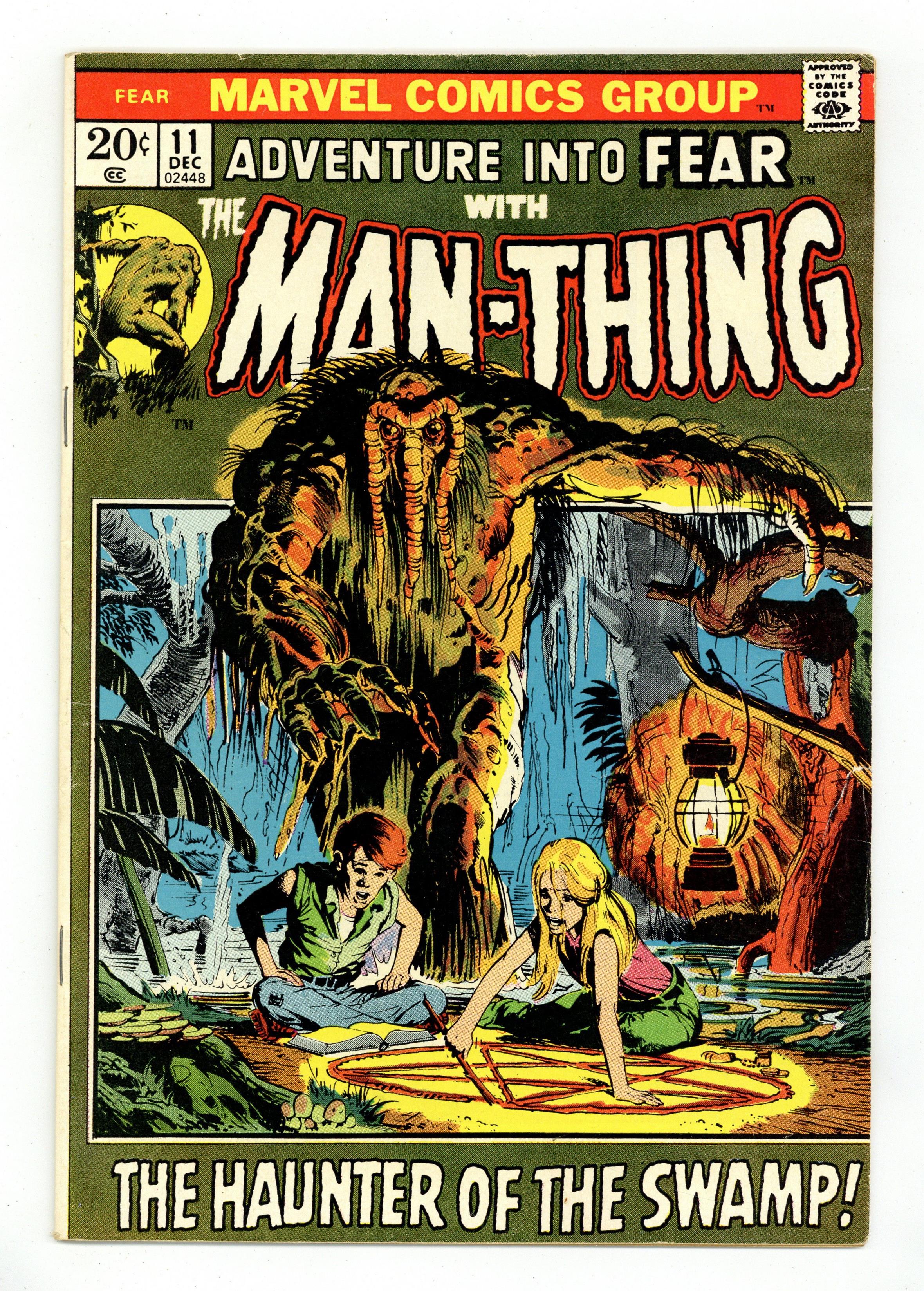 Cover art by Neal Adams. "Night of the Nether-Spawn!", script by Steve Gerber, pencils by Rich Buckler, inks by Jim Mooney; Man-Thing battles Thog the Nether-Spawn, who makes his first appearance; Jennifer Kale also makes her first appearance; Steve Gerber's first full story as a professional writer. "The Spider Waits," art by Fred Kida; Sven's childhood fear of spiders turns to enjoyment as he kills them indiscriminately at his factory cleaning job; He meets a woman who is actually a human spider who lures him into her web, literally. 36 pgs., full color. Cover price $0.20. Grade: VG/FN 5.0 explanation of grade Condition: Used (collectible)