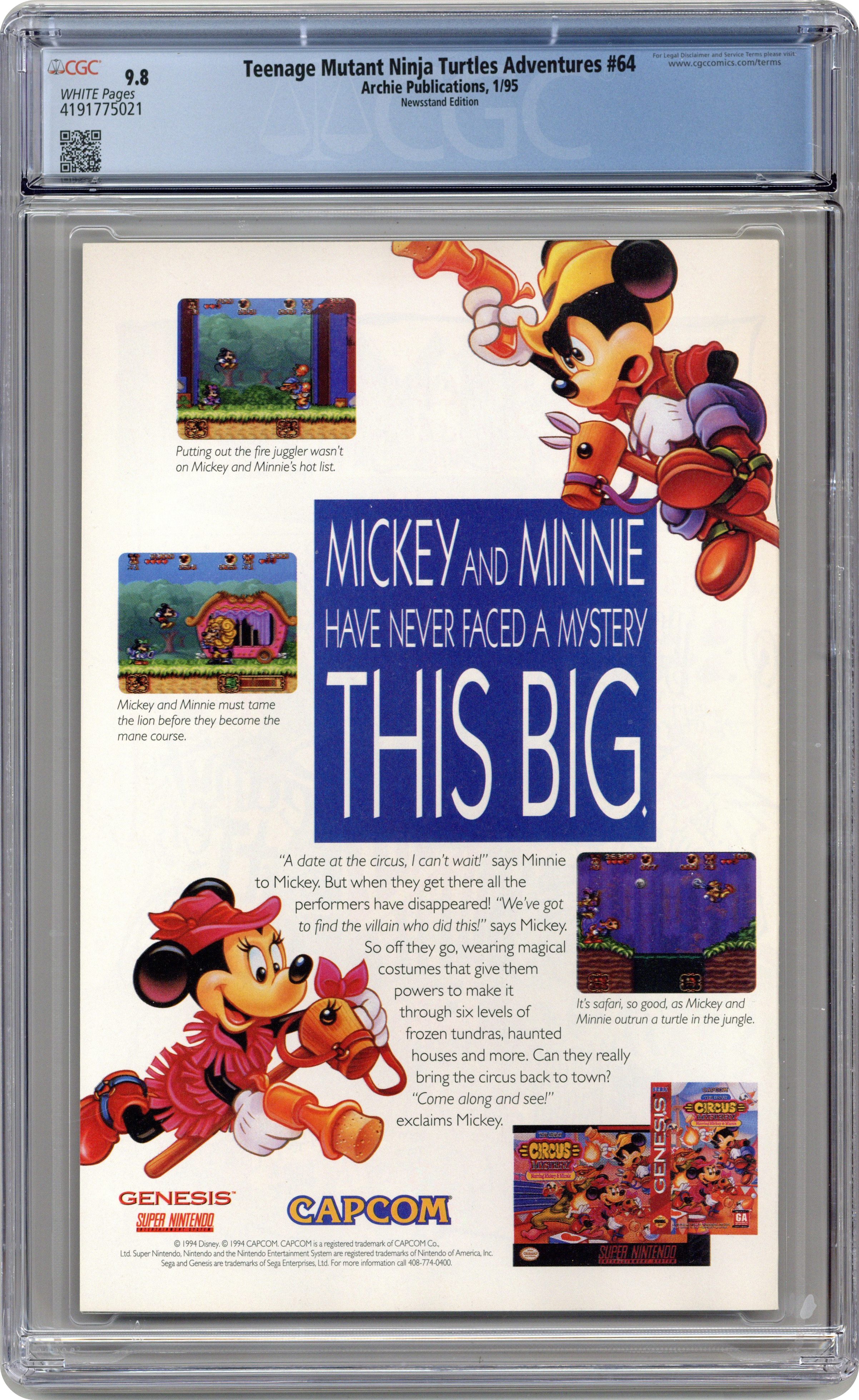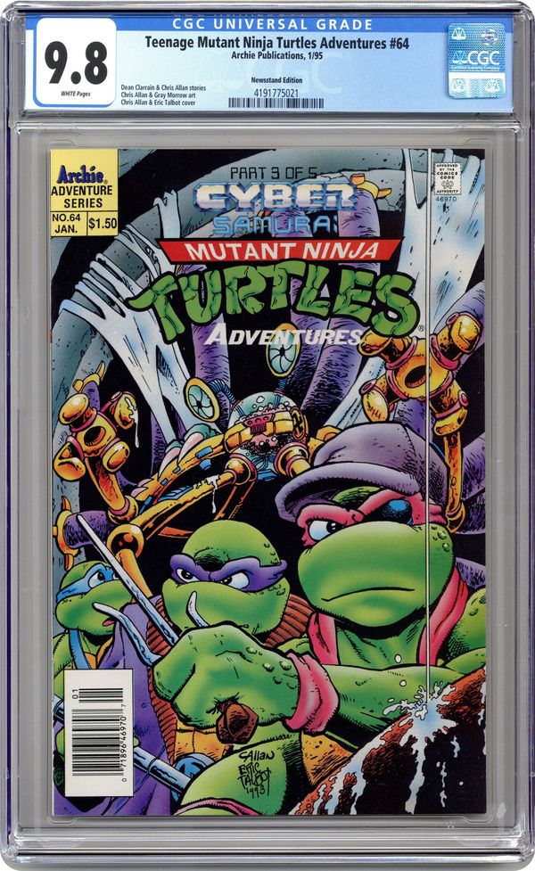 "Dreamland: Part 3 of 5" - Written by Dean Clarrain. Art by Chris Allan and Brian Thomas. Cover by Chris Allan and Eric Talbot. The Turtles journey back to the last days of World War II to battle Hitler's brain! Plus: the April O'Neil backup series by Clarrain and Gray Morrow continues! 32 pages, full color. Cover price $1.50. Grade: CGC 9.8 explanation of grade Condition: Used (collectible)