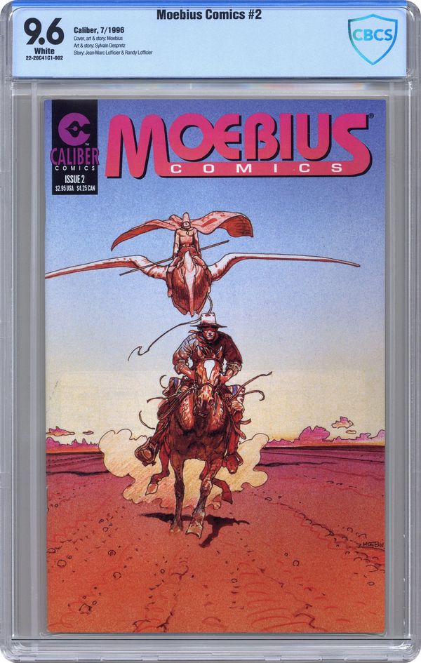Ended May 23 2023 Winning Bid $16 Stories by Moebius, Sylvain Despretz, Jean-Marc Lofficier and Randy Lofficier. Art by Moebius and Sylvain Despretz. Cover by Moebius. Caliber presents classic stories and little-known tales by legendary French cartoonist Jean Giraud, better known as Moebius. Sylvain Despretz interprets Girauds fantasy hero Arzach; the mind-bending Man from Ciguri saga continues. 32 pages, B&W. Mature readers. Cover price $2.95. Grade: CBCS 9.6 explanation of grade Condition: Used (collectible)