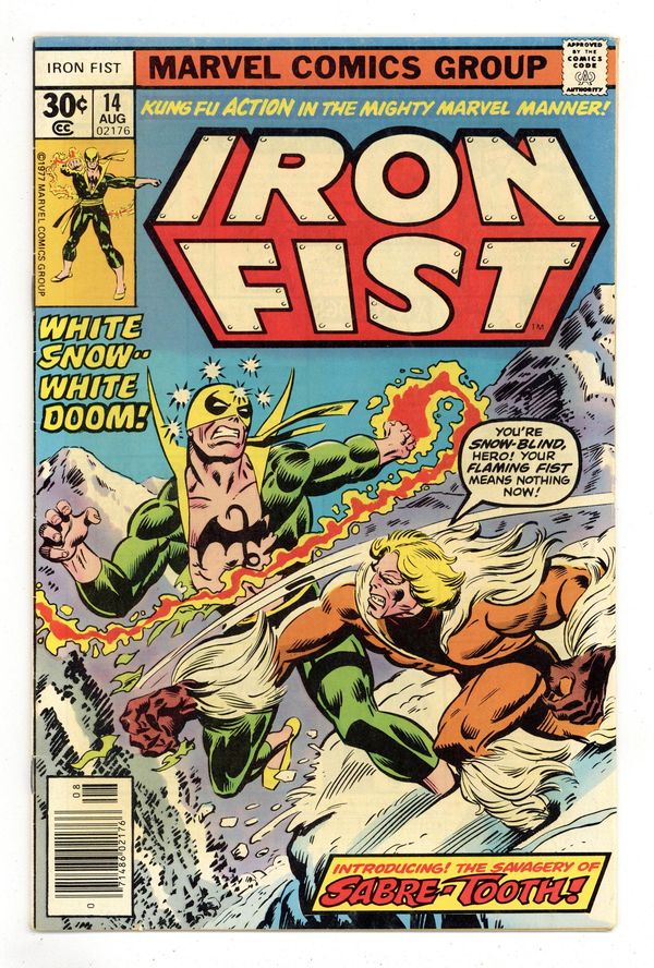 1st appearance of Sabretooth - next appearance is in Power Man and Iron Fist # 66. "Snowfire!" Guest-starring Colleen Wing. Story by Chris Claremont. Art by John Byrne and Dan Green. Cover by Dave Cockrum, and Al Milgrom. Lost and wounded somewhere in the Canadian wilderness, Iron Fist must summon all his energy and skills to survive an encounter with the deadly man called Sabretooth. 36 pages, full color. Cover price $0.30. Grade: FN- 5.5 explanation of grade Condition: Used (collectible)