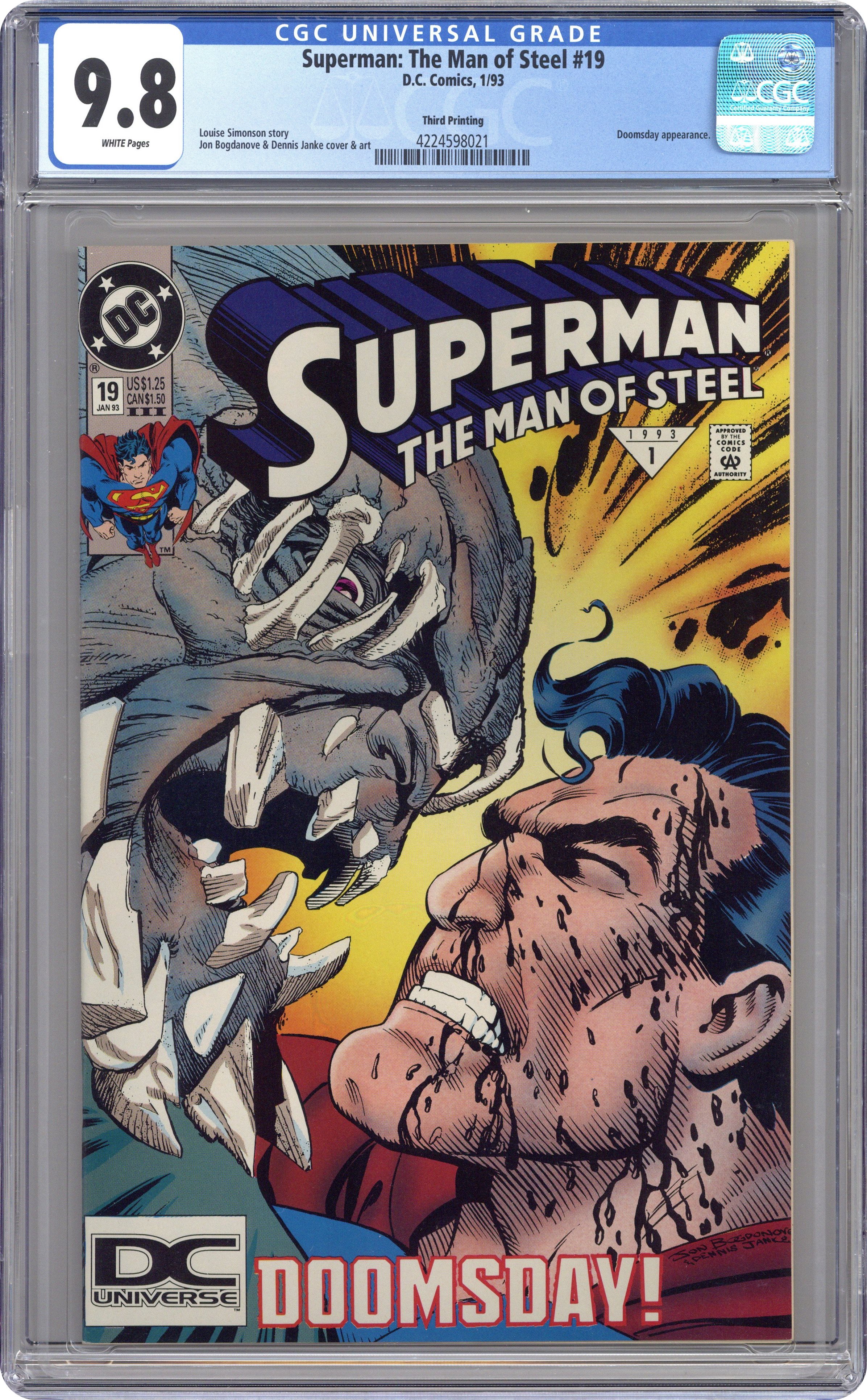 Roman Numeral III for third printing, next to Issue # Cover price $1.25. Grade: CGC 9.8 explanation of grade Condition: Used (collectible)