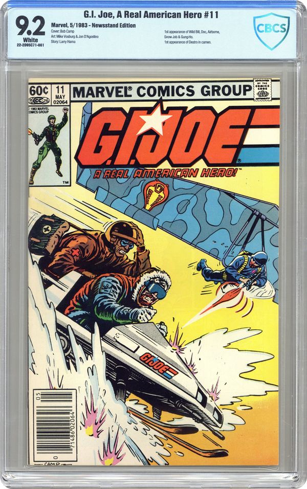 First Printing. Direct Edition. "The Pipeline Ploy!" Written by Larry Hama. Art by Mike Vosburg and Jon D'agostino. More new Joes are introduced: Gung-Ho, Doc, Snow Job, Airborne, and Wild Bill. Plus, who is the mysterious new enemy - Destro and what is the secret of the deadly HISS tanks. Cover price $0.60. Grade: CBCS 9.2 explanation of grade Condition: Used (collectible)