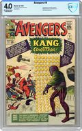 Ended Oct 10 2023 Winning Bid $396 Cover pencils by Jack Kirby, inks by Dick Ayers. Kang, The Conqueror!, script by Stan Lee, pencils by Jack Kirby, inks by Vince Colletta cover; Kang appears and demands to be made ruler of the Earth; The Avengers attempt to stop him, but it comes down to Wasp and the Teen Brigade to slow Kang long enough for the rest of the Avengers to free themselves and put an end to Kang's threat. Roster: Captain America, Thor, Iron Man, Wasp, Giant-Man, and Rick Jones. First appearance of Kang. 36 pgs. $0.12. Cover price $0.12. Grade: CBCS 4.0 explanation of grade Condition: Used (collectible)