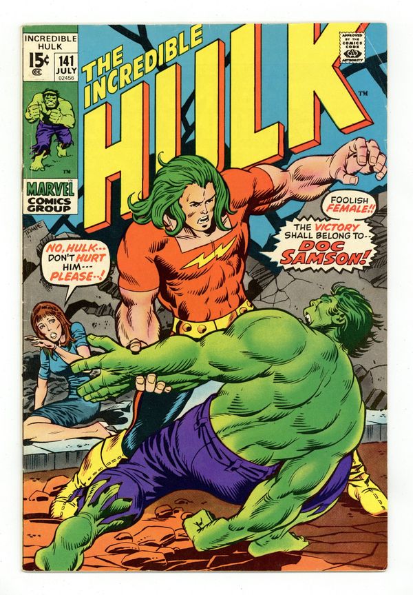 Ended Oct 5 2023 Winning Bid $92 Cover art by Herb Trimpe. His Name Is... Samson!, script by Roy Thomas, pencils by Herb Trimpe, inks by John Severin; Ross enlists the aid of Dr. Samson in siphoning off the Hulk's power to revert Betty from her crystal state and to rid Bruce of the Hulk forever; The experiment is a success, and Leonard uses more of the Hulk's energy to turn himself into a super hero; Watching Doc Samson trying to win Betty's affections, Bruce gets jealous and turns himself into the Hulk once more. House ad for Iron Man #39. 36 pgs. $0.15. Cover price $0.15. Grade: FN- 5.5 explanation of grade Condition: Used (collectible)