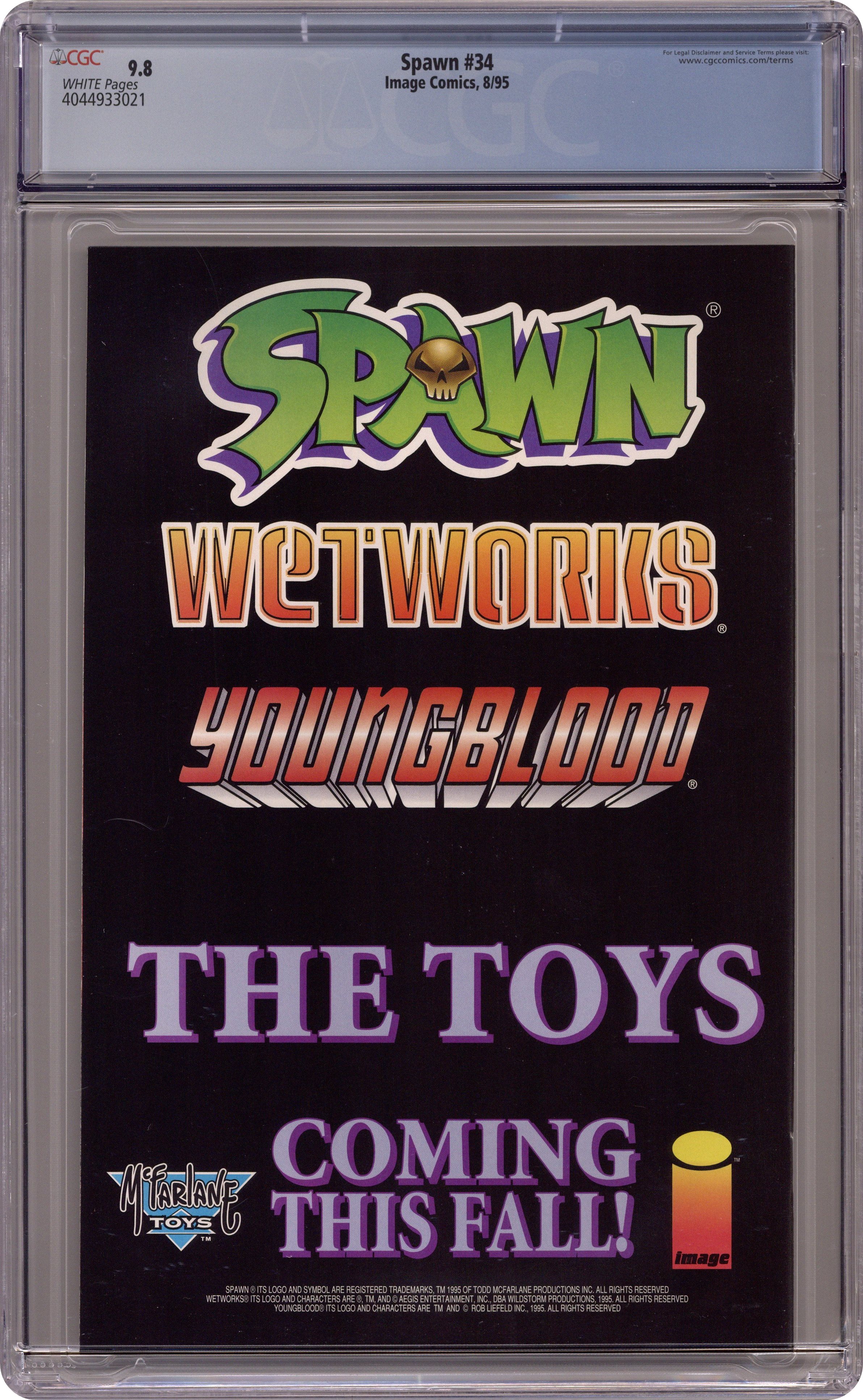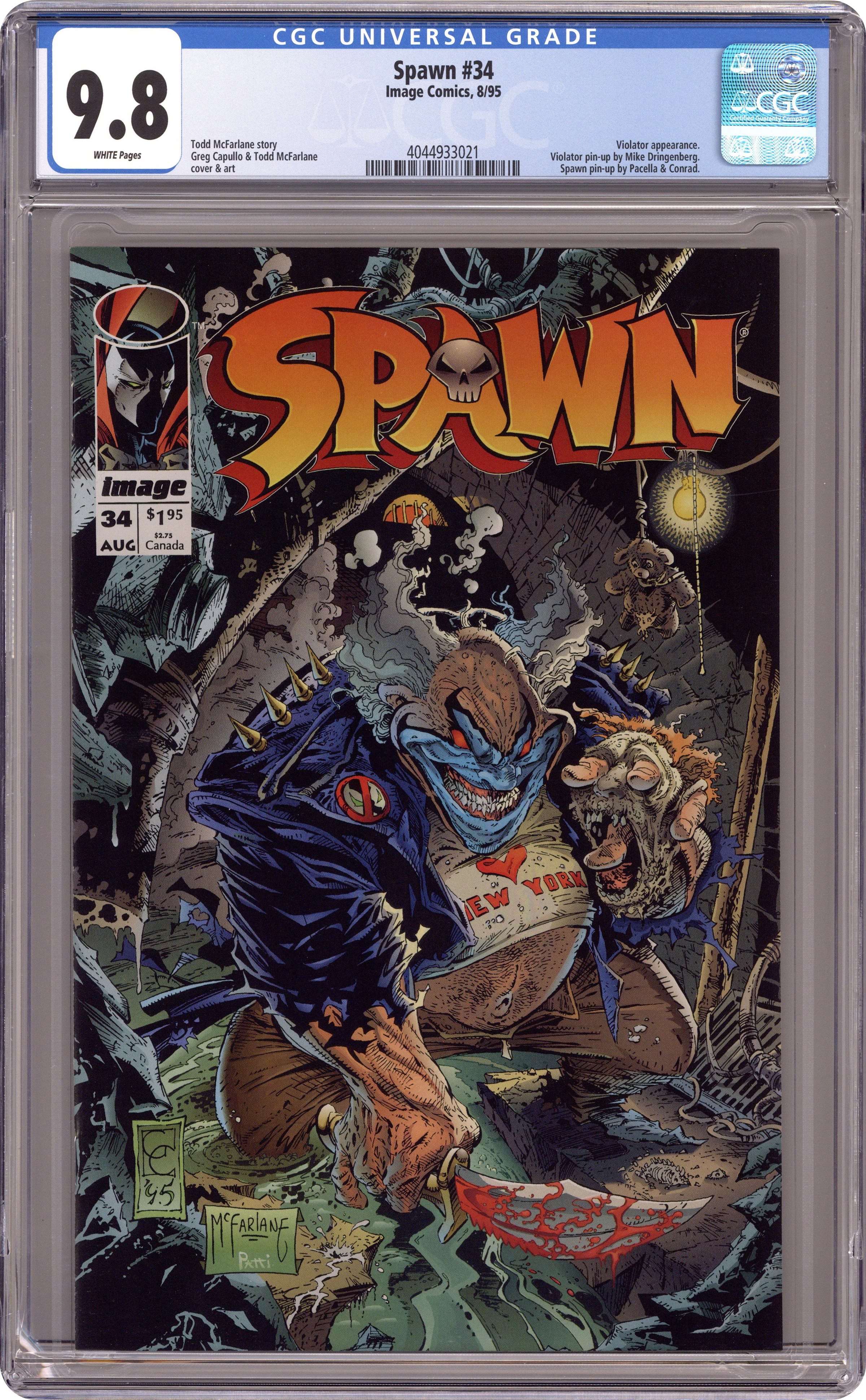 Direct Edition. "Ripples!" Story by Todd McFarlane. Art by Greg Capullo and Todd McFarlane. Get caught up on all the members of Spawn's supporting cast in this issue. Includes 2 pin-ups by Mike Dringenberg (Violator) and Mark Pacella and Kevin Conrad (Spawn). Cover price $1.95. Grade: CGC 9.8 explanation of grade Condition: Used (collectible)