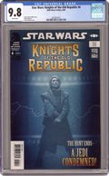 JOHN JACKSON MILLER (W), BRIAN CHING (P), MICHAEL ATIYEH (C), and TRAVIS CHAREST (Cover) Padawan Zayne Carrick faces off against the Jedi Masters hunting him in this shocking finale to the "Commencement" storyline! Something is rotten in the Jedi Council on Taris, but the only ones closest to the truth are a vagabond, a criminal, a droid, and Zayne?now in the custody of the same Jedi falsely accusing him of murdering his fellow Padawan. It's going to take more than foolish bravery to get Zayne out of this one. Too bad that's all he's got! FC, 32pg. Cover price $2.99. Grade: CGC 9.8 explanation of grade Condition: Used (collectible)