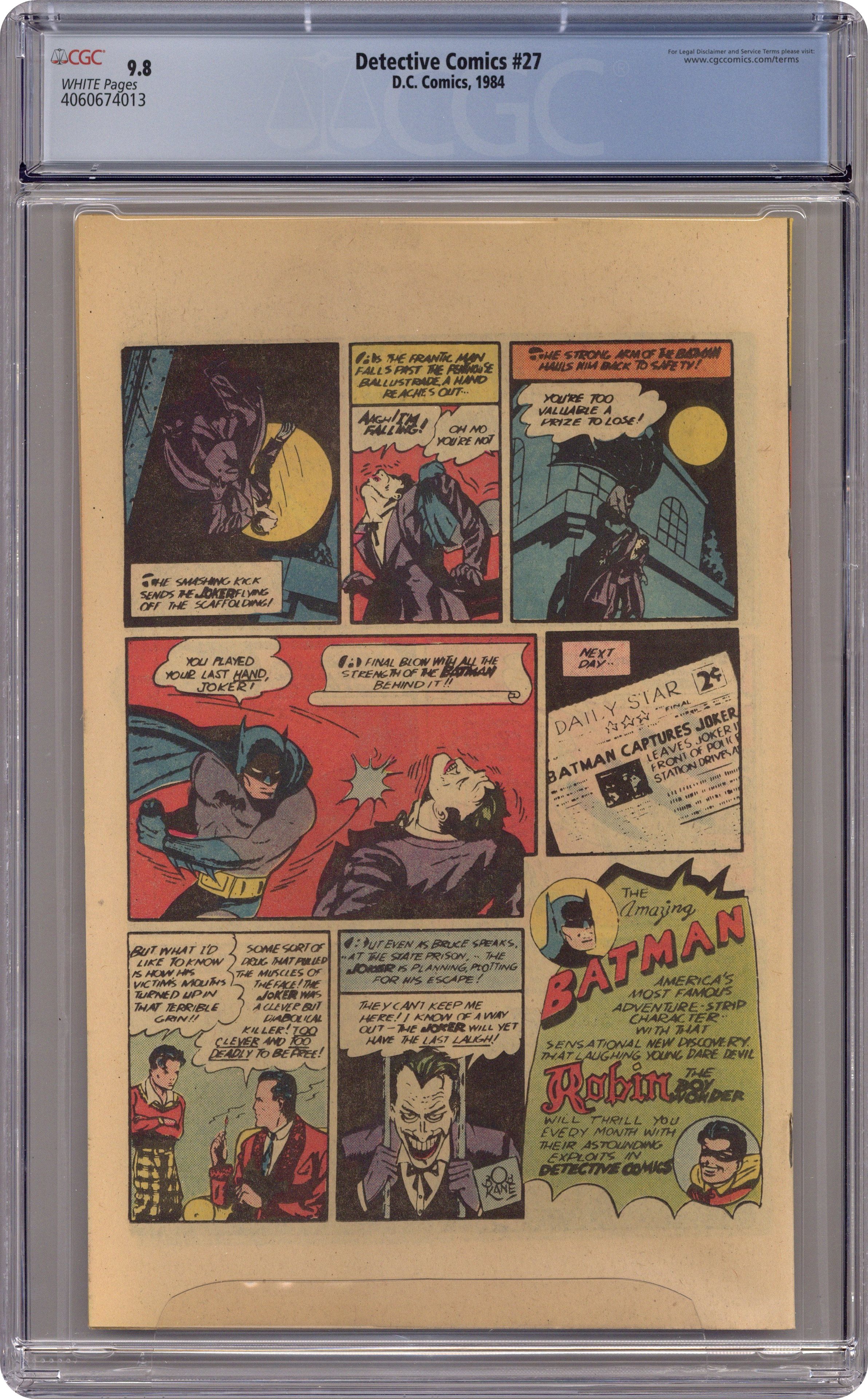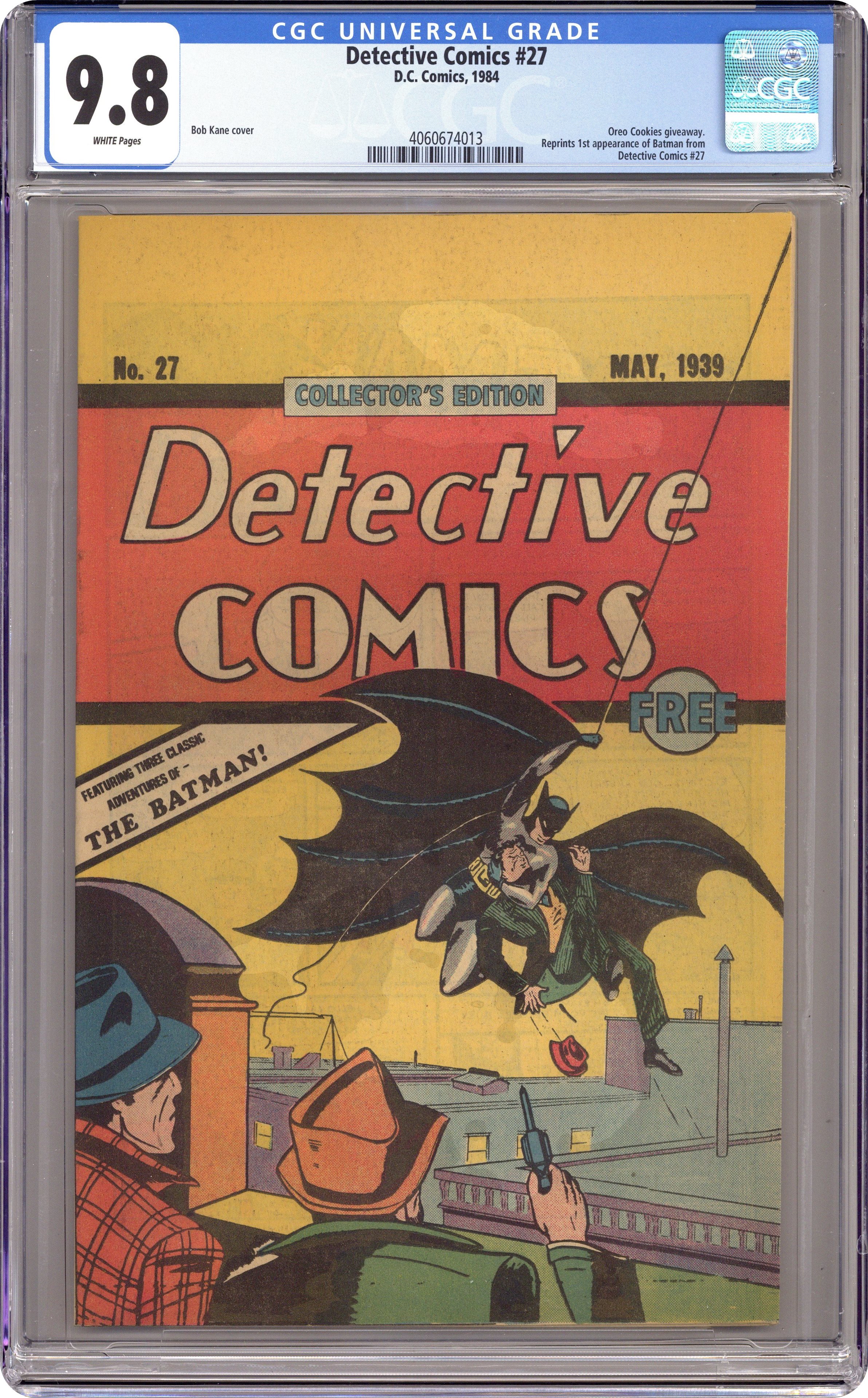 Oreo Cookie promotional comic from 1984. Reprints Batman cover and story from Detective #27, plus Robin origin from Detective #38, and first Joker appearance from Batman #1. 32-pages, all newsprint, full-color standard comic book size. Grade: CGC 9.8 explanation of grade Condition: Used (collectible)