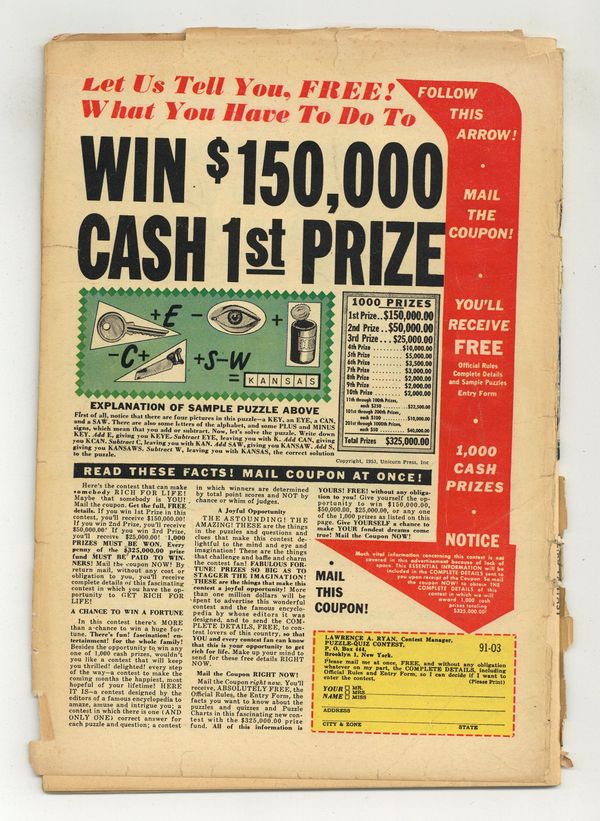 Final issue of the series (becomes Weird Science-Fantasy with issue #23). Cover art by Joe Orlando. "The Silent Towns," script by Ray Bradbury and Al Feldstein (adaptation), art by Reed Crandall; Walter surveys a little white silent town on the edge of a dead Martian sea, wondering what happened to all of its inhabitants; He suddenly hears a phone ringing, but he is too late to answer it; After this happens twice, he succeeds in answering a phone and finds a Miss Selsor on the other end, and he meets her, only to find that she is fat and ugly; An adaptation of a Ray Bradbury's The Martian Chronicles story. "The Freaks," script by Bill Gaines (co-plot) and Al Feldstein (co-plot and script), art by Jack Kamen; The freaks at a circus side show are sick and tired of the stares of the crowds, their snickers, their groans of disgust...and one decides to quit. But when the freak is found dead in his tent, the circus owners go in search for a replacement. "Public Service!" text story. "The Fossil," script by Bill Gaines (co-plot) and Al Feldstein (co-plot, script), art by Joe Orlando; Astronauts land on a deserted planet and begin hunting for archaeological evidence of the former inhabitants; They find a huge skeleton of a creature that apparently walked on all fours, but are baffled by its nature. "Derelict Ship," script by Bill Gaines (co-plot) and Al Feldstein (co-plot, script), art by Bernie Krigstein; Captain Vance Kaye is the commanding officer of an exploratory spaceship; He's obsessed with searching every derelict ship his crew discovers, but nobody knows why. 36 pages, full color. Cover price $0.10. Grade: FR/GD 1.5 explanation of grade Condition: Used (collectible)