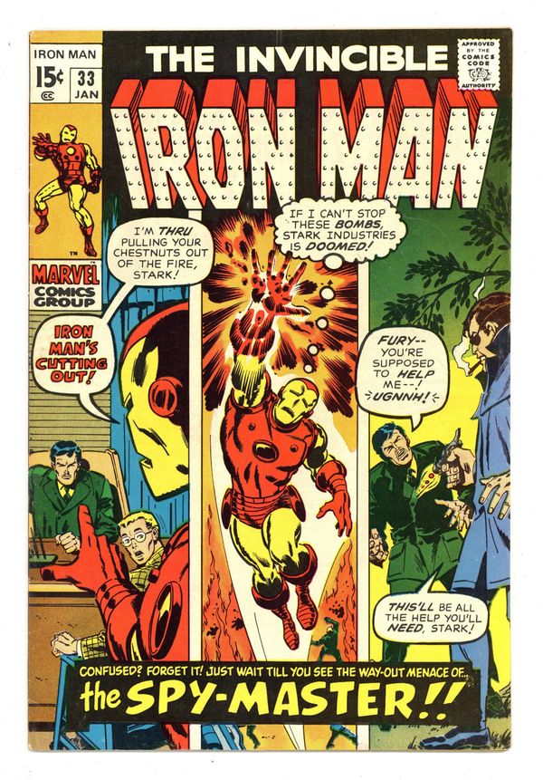 "Their Mission: Destroy Stark Industries!" First appearance of Spymaster. Story by Allyn Brodsky. Art by Don Heck and Joe Gaudioso. Cover by Sal Buscema. Spymaster and his Espionage Elite are planning to infiltrate and destroy Stark Industries! Despite the best efforts of Tony Stark and his security personnel, the industrial spies quickly take over the SI complex, and they even capture Tony! Cameo appearance by Nick Fury. (Note: The letters page contains a half page ad for Avengers 83 featuring the Lady Liberators.) 32 pages Cover price $0.15. Grade: FN 6.0 explanation of grade Condition: Used (collectible)