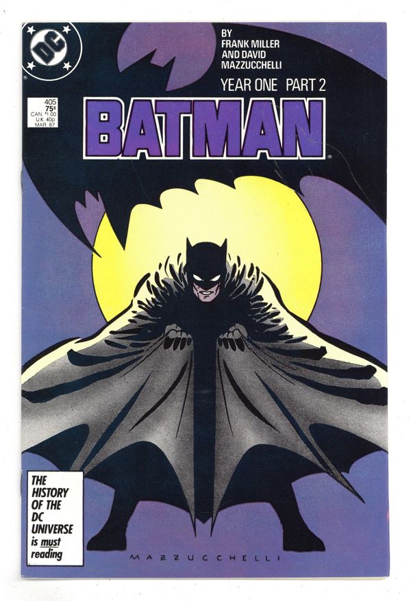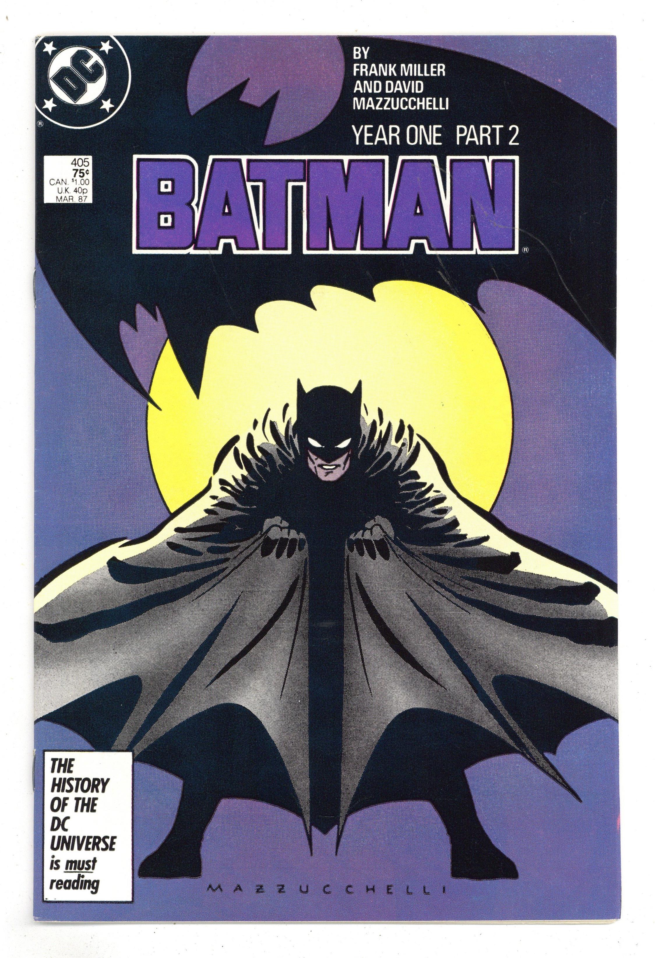 Ended Jan 17 2024 Winning Bid $13 First Printing. Direct Edition. Batman Year One, Chapter Two: "War Is Declared". Part 2 of 4, continued from the previous issue. Story continues next issue. Bruce Wayne dons the cape and cowl for the first time to take the fight to the criminal element, while James Gordon stirs up trouble within his own department. Script by Frank Miller, art by David Mazzucchelli. Harvey Dent appears as Assistant District Attorney. Mazzucchelli cover. 1st printing. NOTE: Most issues from 397-432 were reprinted in 1989 and sold in multipacks. These 2nd and 3rd prints have back cover ads dated 1989. 36 Pages, Full Color. Cover price $0.75. Grade: VF- 7.5 explanation of grade Condition: Used (collectible)