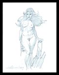 The quintessential Hoffman piece- a nude woman with an air of mystery and danger, drawn with impeccable anatomy and tons of atmosphere. This sketch appears in the also-included Mike Hoffman's Sketch Madness (on pg 44), which itself includes a fully inked sketch on the inside back cover. Loose sketch is pencil on paper, signed by the artist, and measures 8 1/2" x 11". The sketch on the inside back cover of the book is done in pencil and ink and is also signed.